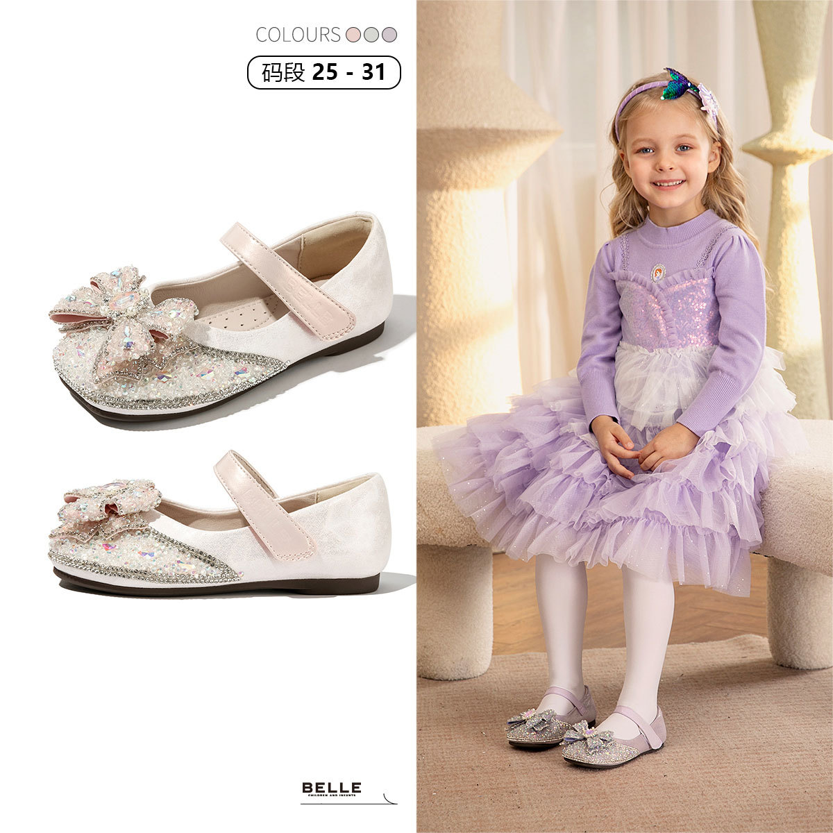 【闪钻蝴蝶结公主鞋】开学季春款女童皮鞋学生演出鞋儿童水晶单鞋 841419