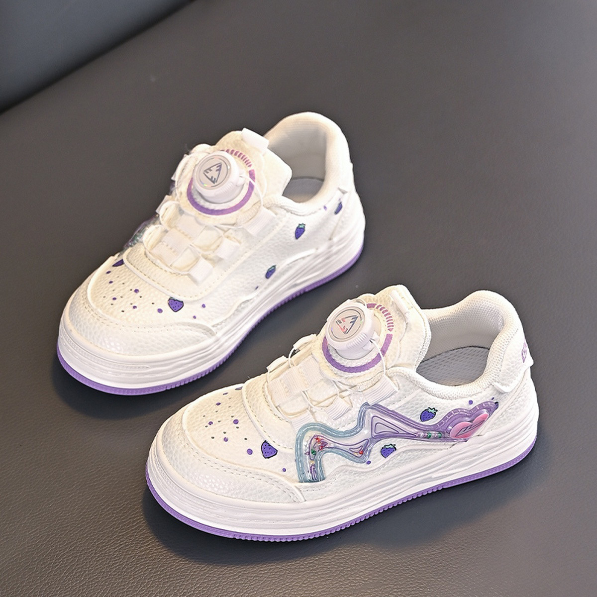 童鞋儿童可爱小草莓时尚旋钮款女童中大童板鞋休闲鞋 747784