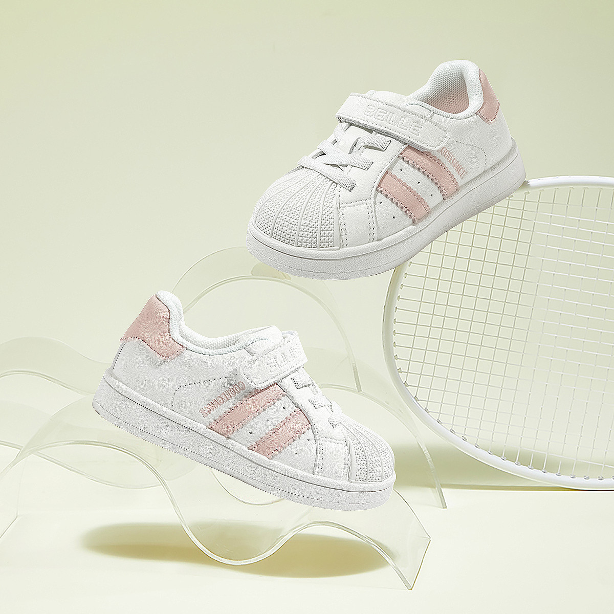 【百搭好物】时尚简约软底耐磨小白鞋轻便魔术贴低帮板鞋男女童鞋 550467