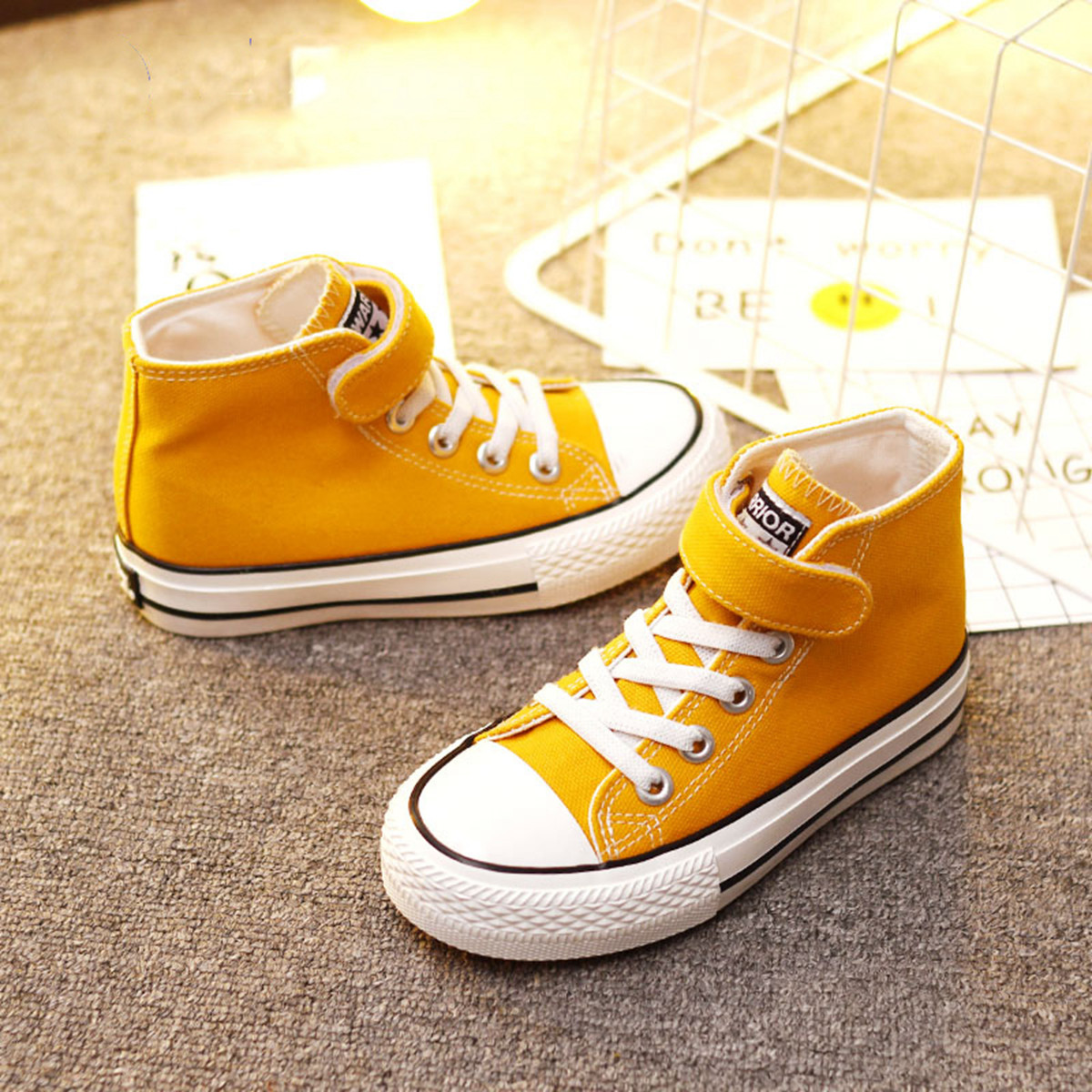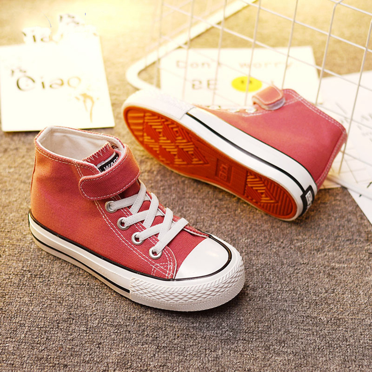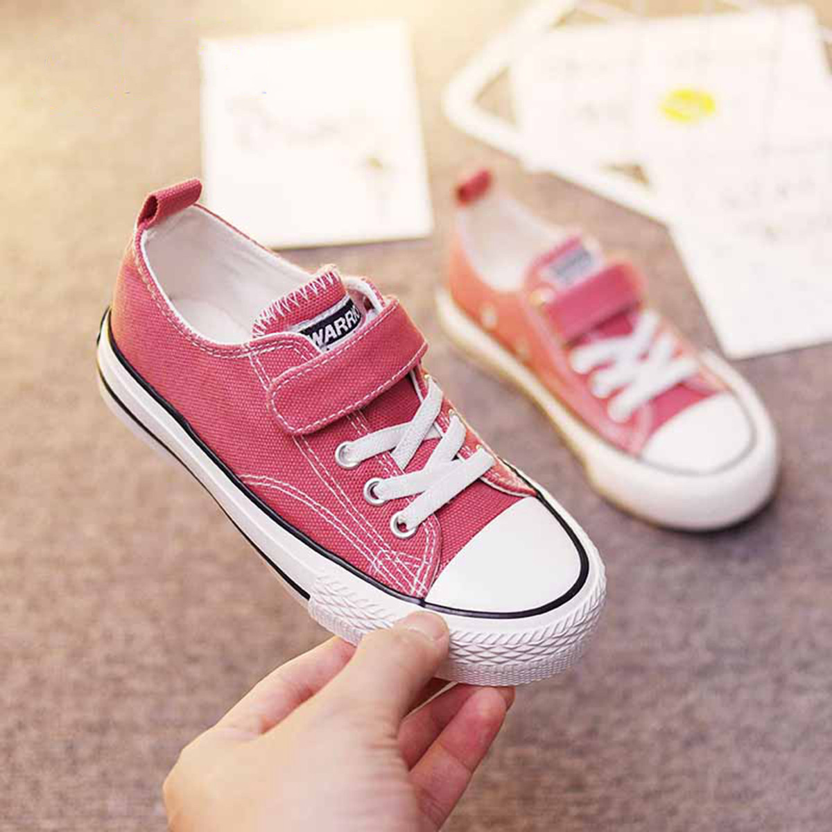 【断码捡漏】透气轻便儿童帆布鞋时尚魔术贴低帮板鞋男女童休闲鞋 351619