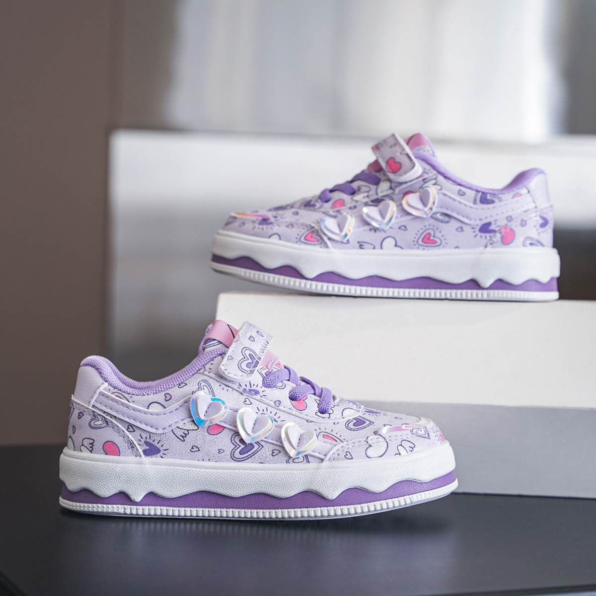 童鞋儿童爱心印花装饰休闲可爱板鞋女童中大童板鞋 396744