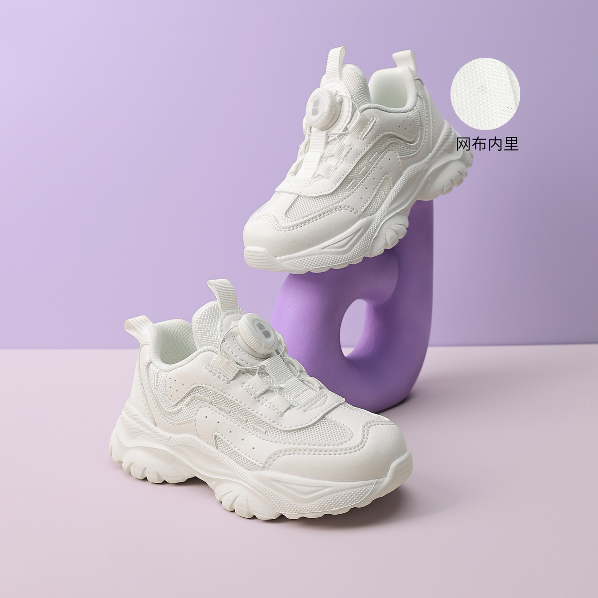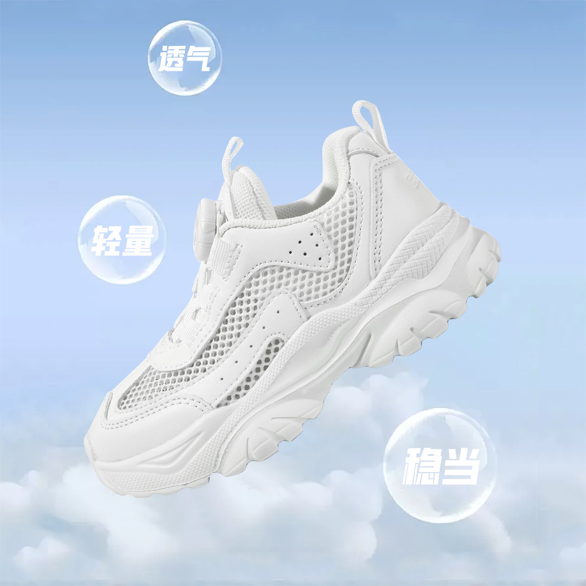 【校园小白鞋】开学季春款男女童运动鞋旋转扣网面休闲鞋跑步鞋 046923