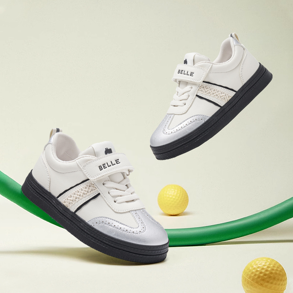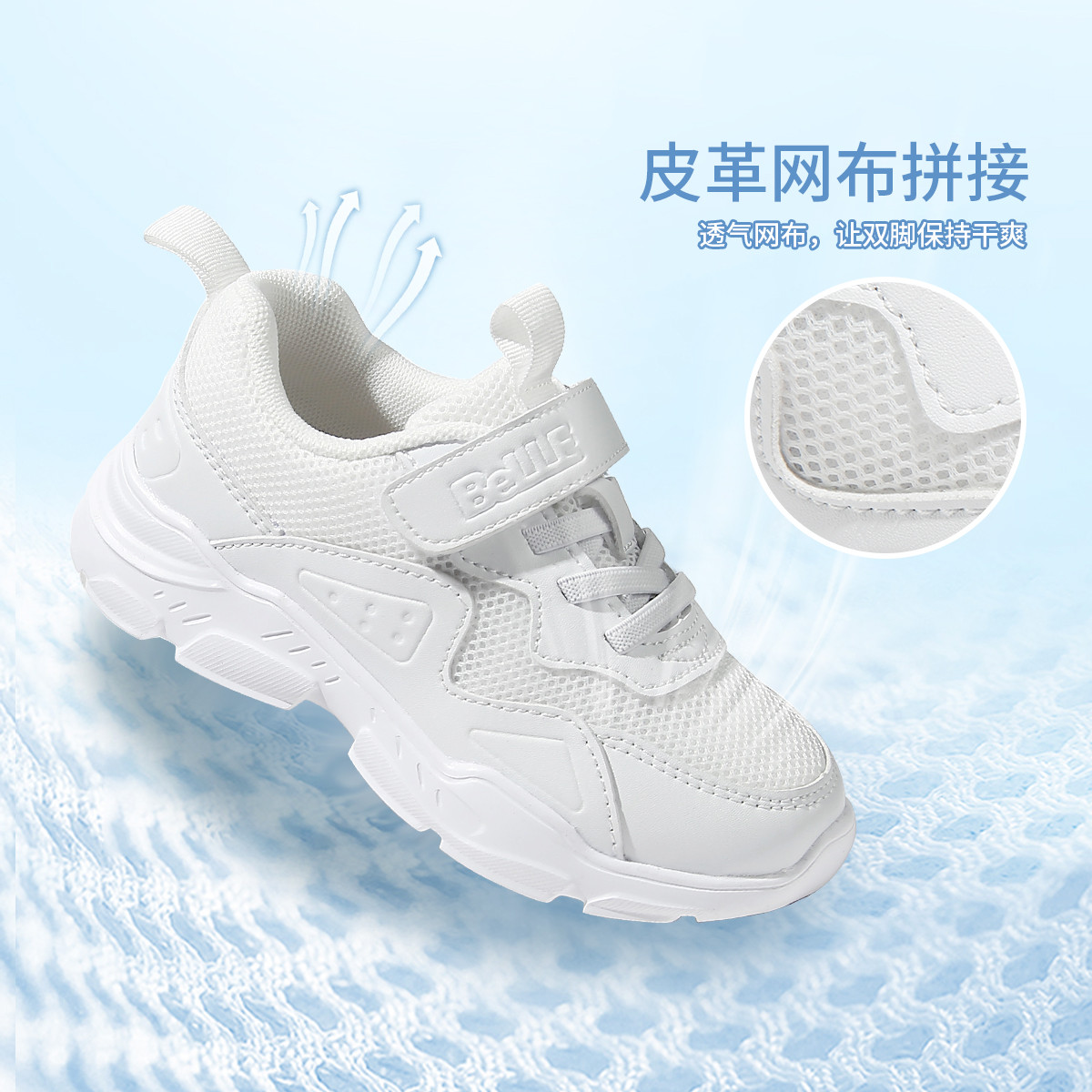 童鞋儿童运动鞋中大童魔术贴简约户外休闲小白鞋轻便透气包裹童鞋 208968