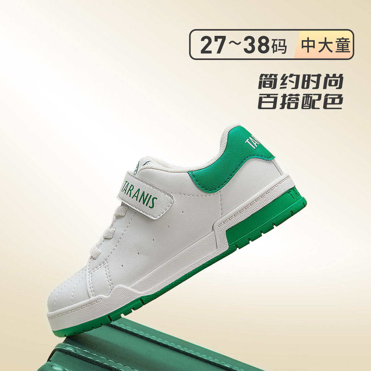 【春季爆款】时尚百搭儿童小白鞋轻便舒适低帮板鞋魔术贴休闲鞋 543261