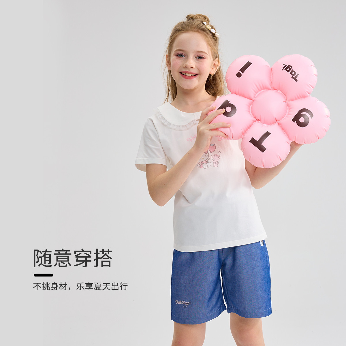 夏季薄款女童短裤夏款宽松透气裤子可爱印花外穿透气舒适儿童短裤 370433