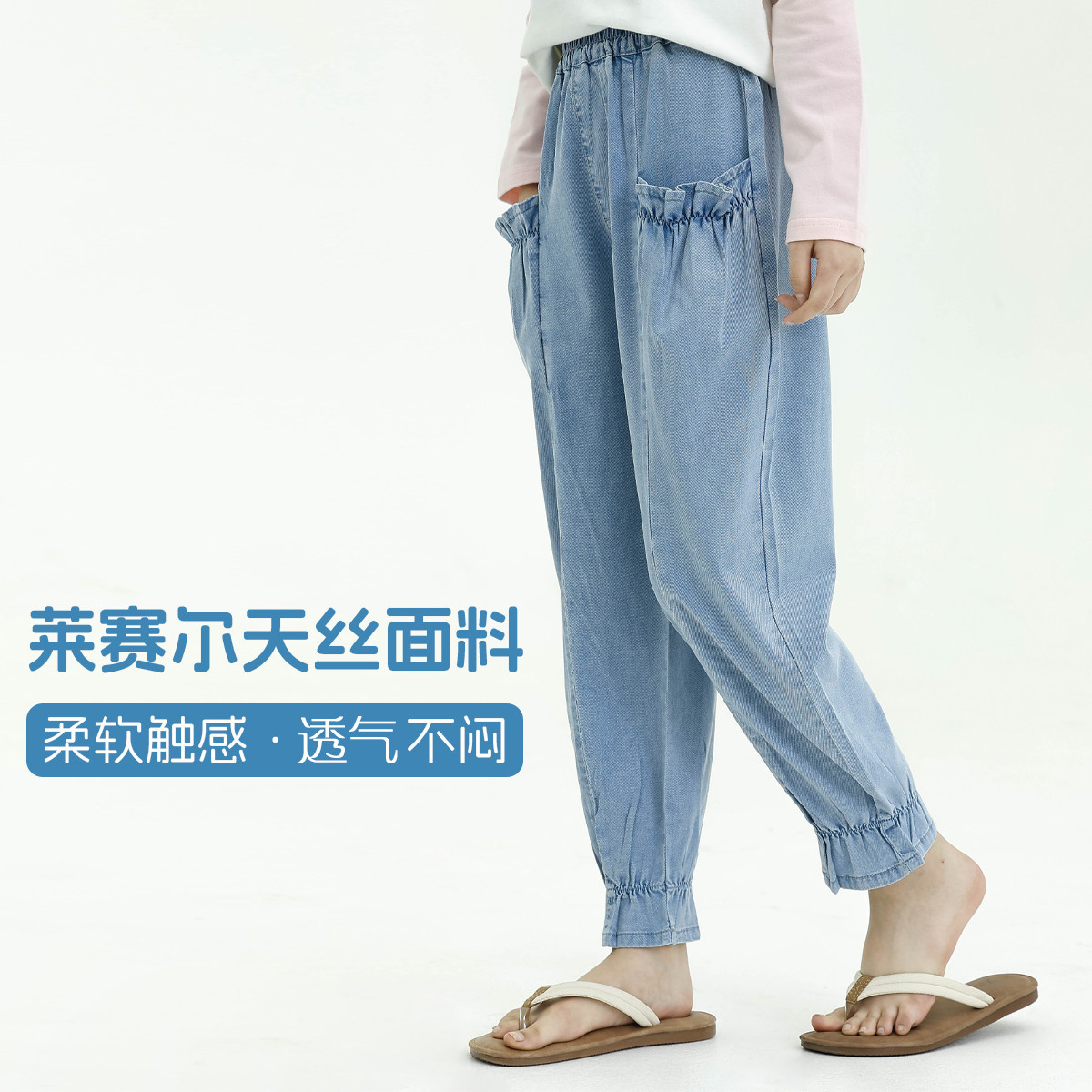 【莱赛尔天丝】女童牛仔裤夏薄款运动宽松哈伦裤休闲长裤灯笼裤 635457