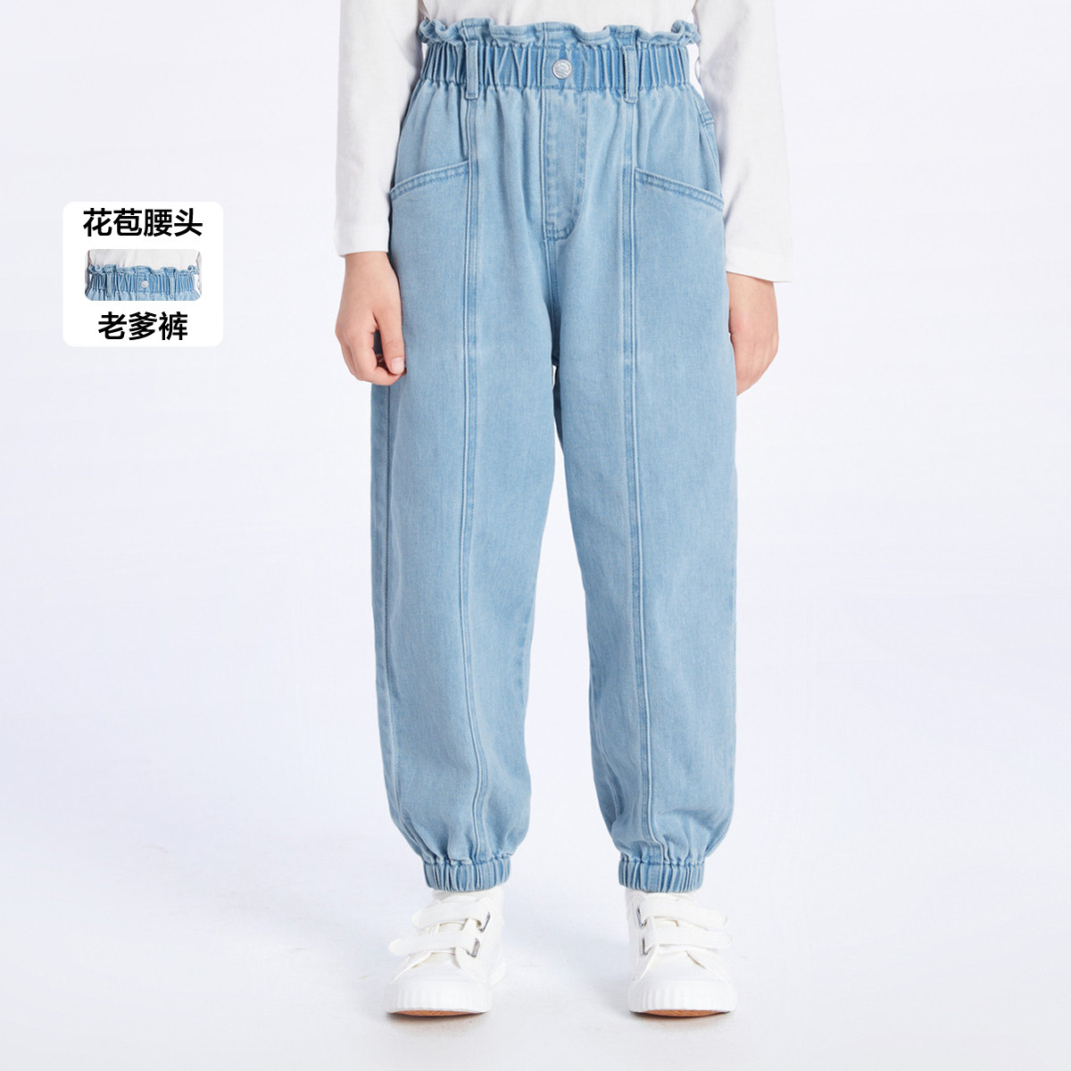 宽松老爹裤女童裤子儿童牛仔裤春秋中大童设计感长裤 745925