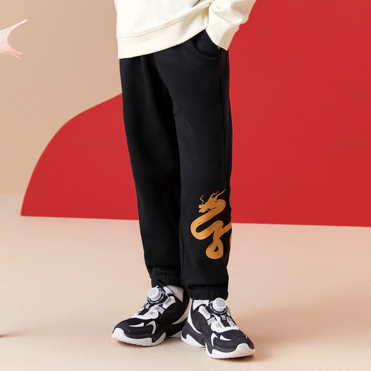 龙纹加绒儿童裤子男童长裤国风秋冬季童装中大童运动裤潮酷休闲裤 698757