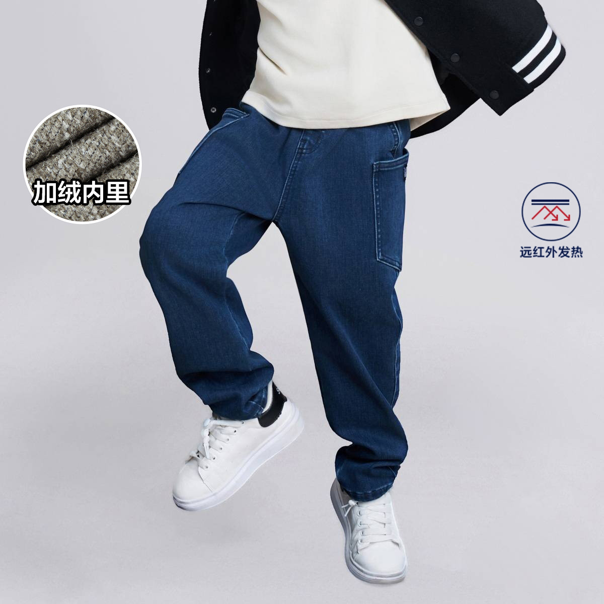 内里加绒保暖儿童裤子牛仔裤男童女童小童宽松裤子秋冬童装哈伦裤 046661