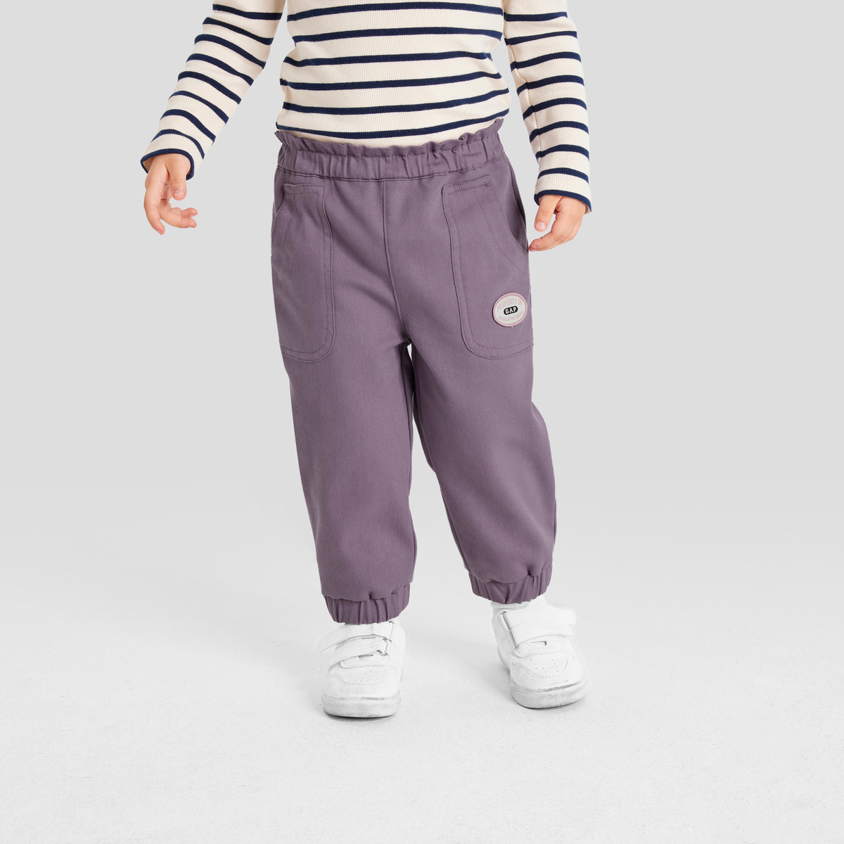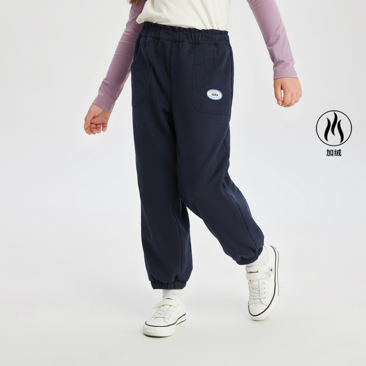 Gap女幼童春秋款LOGO斜纹布束脚裤789183儿童加绒保暖长裤 670170
