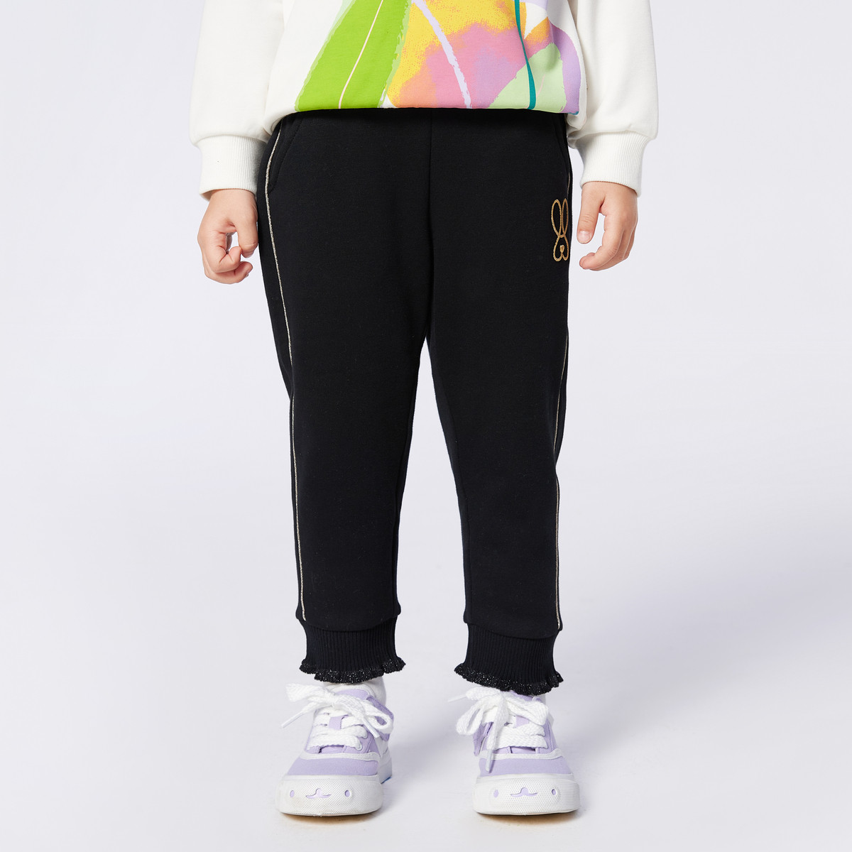 加绒运动裤女童裤子儿童春秋童装小童宝宝休闲甜美简约长裤生肖兔 403909