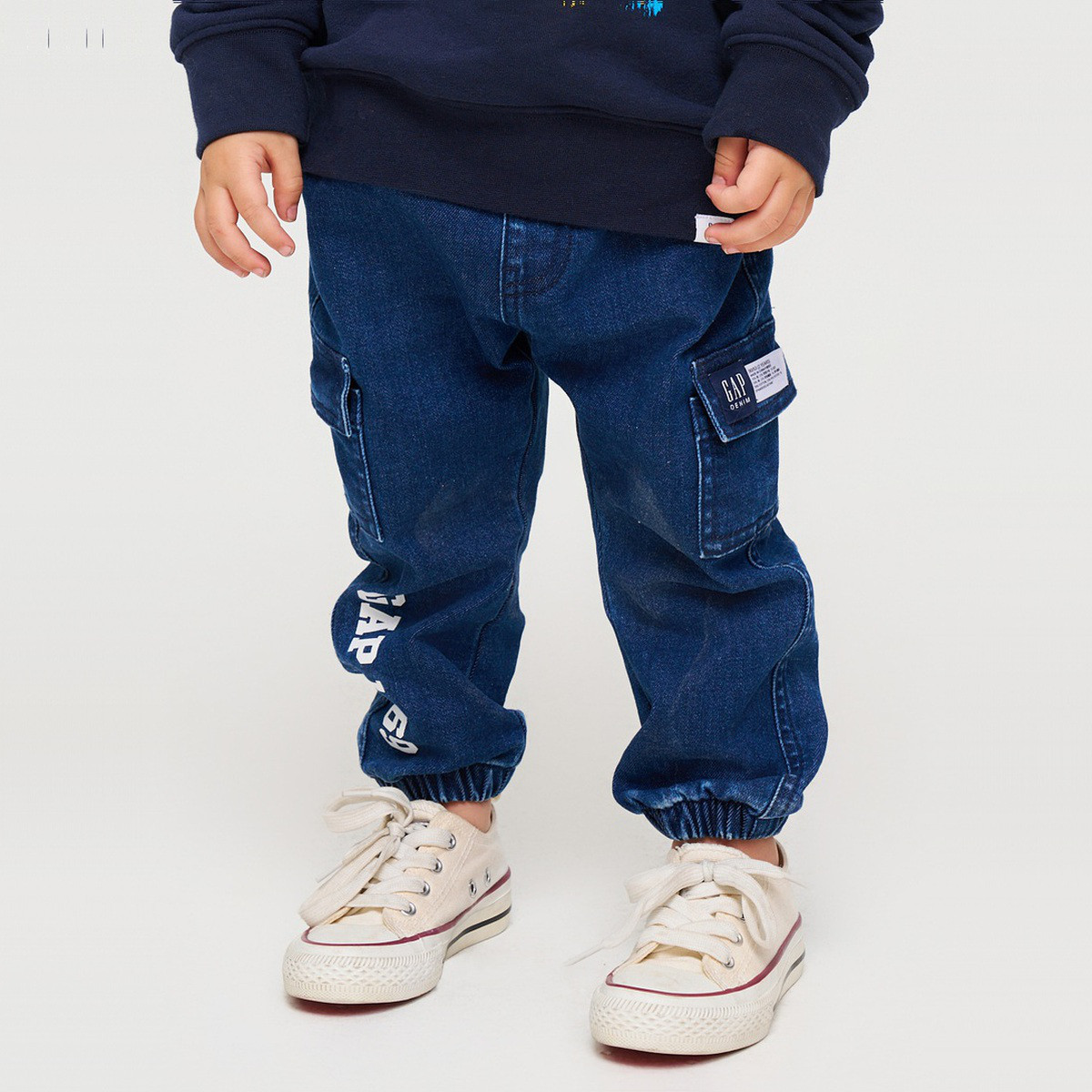 Gap男幼童春秋款弹力加绒保暖宽松牛仔裤784998童装工装裤 417818
