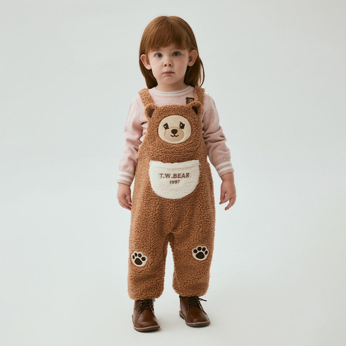 小熊童装春季男女宝宝仿羊羔绒背带裤 245121