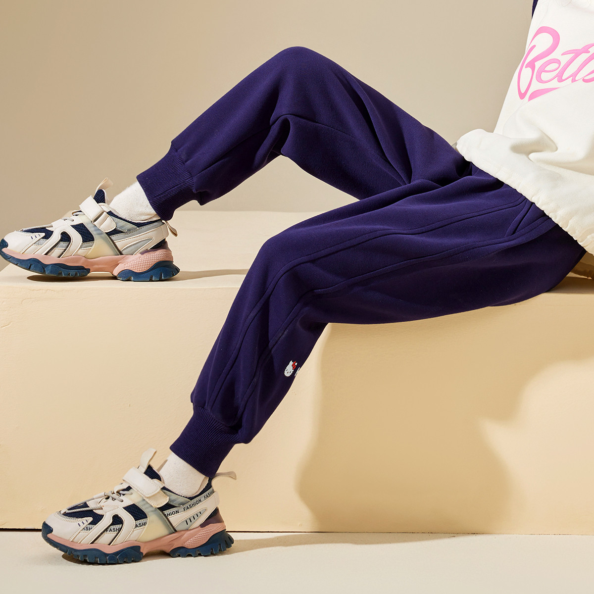 【ip联名】儿童卫裤春秋长裤束口裤拼接色休闲裤运动裤女童裤子 577729