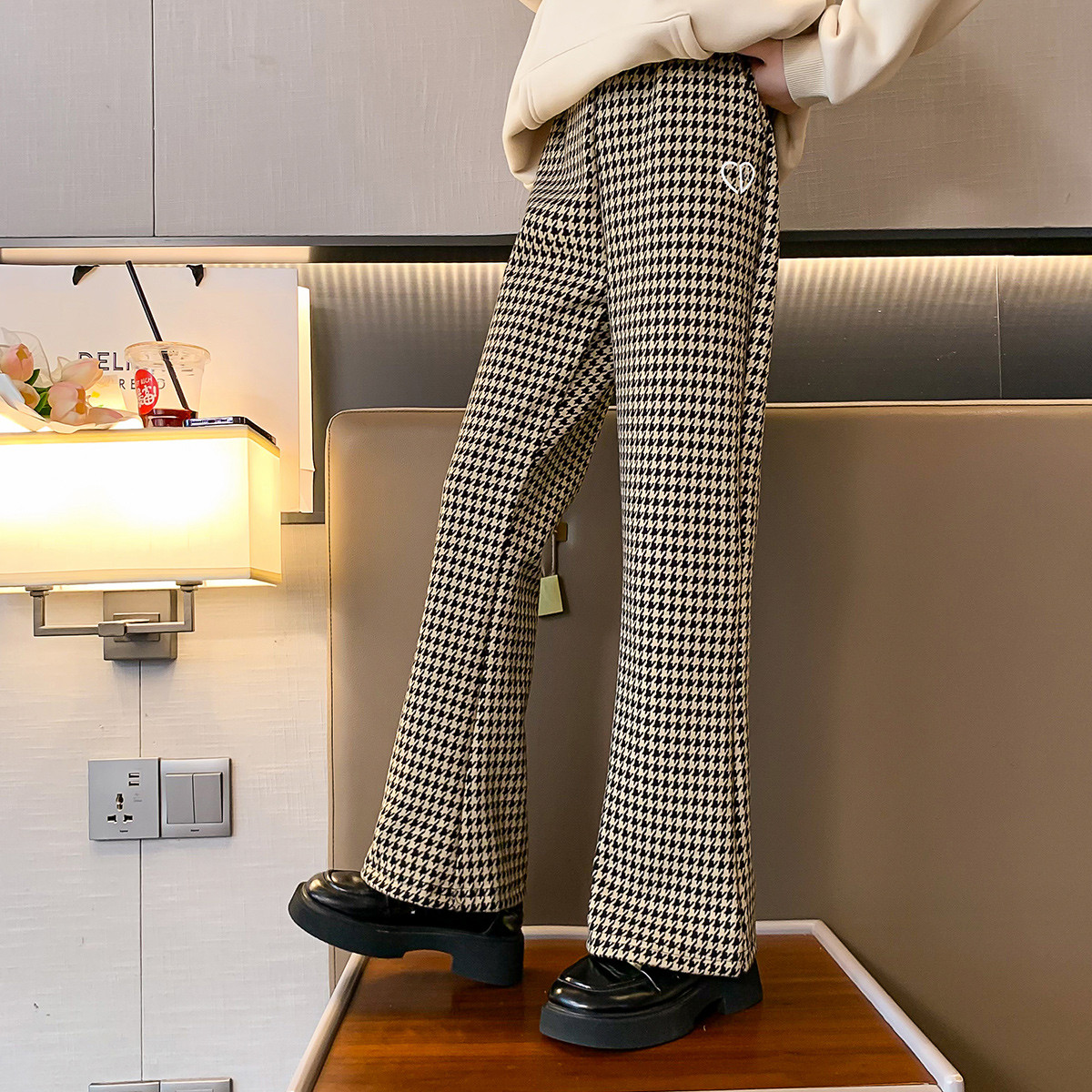女童阔腿裤时髦洋气女孩格子纹长裤中大童运动休闲风儿童长裤子潮 671183