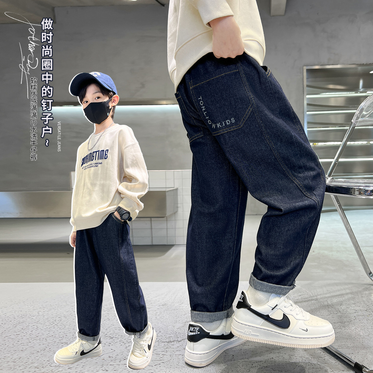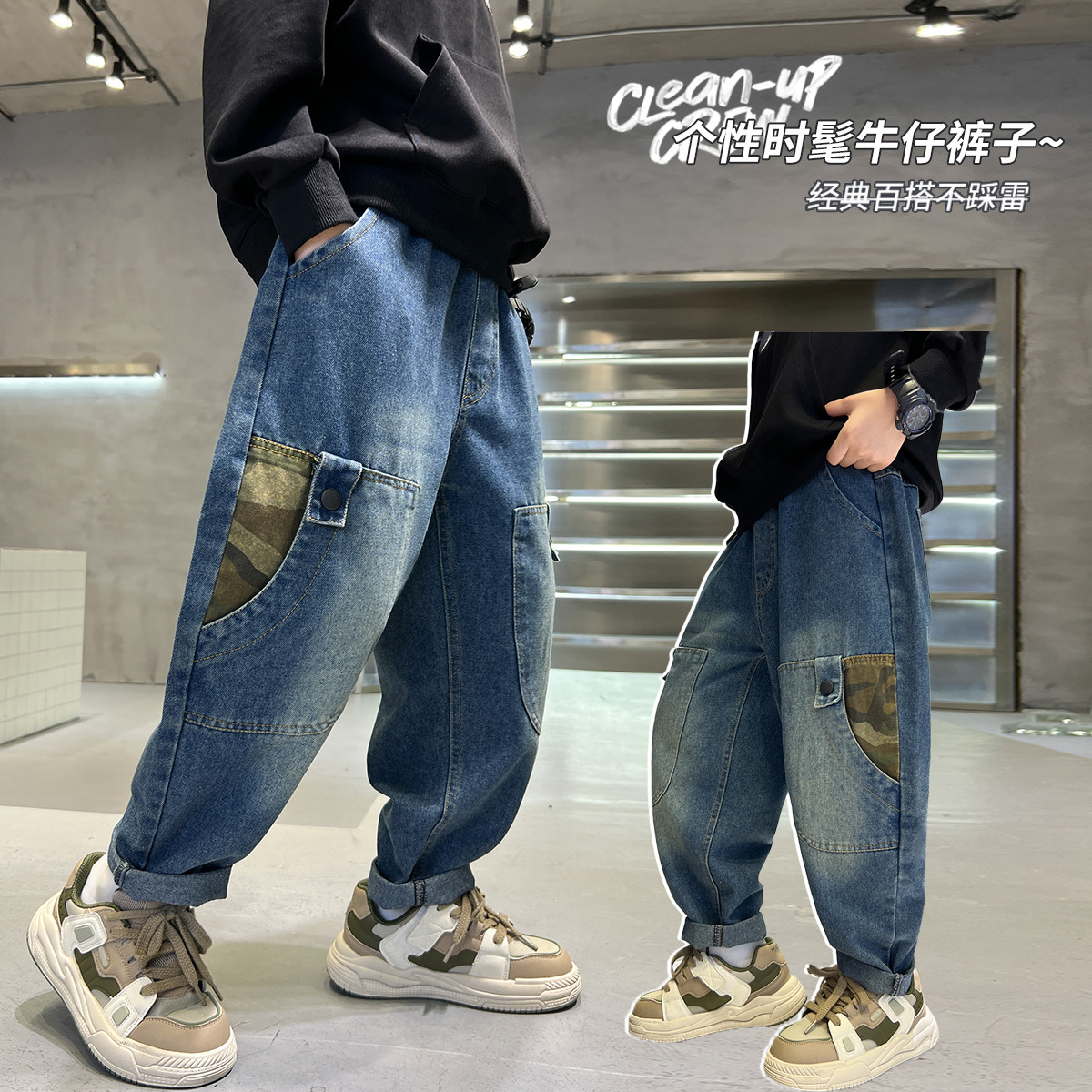 男童牛仔裤2025春季时尚中大童牛仔裤儿童宽松束脚外穿长裤潮 653263