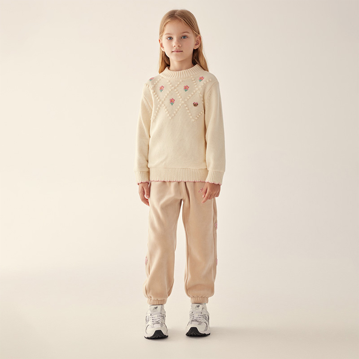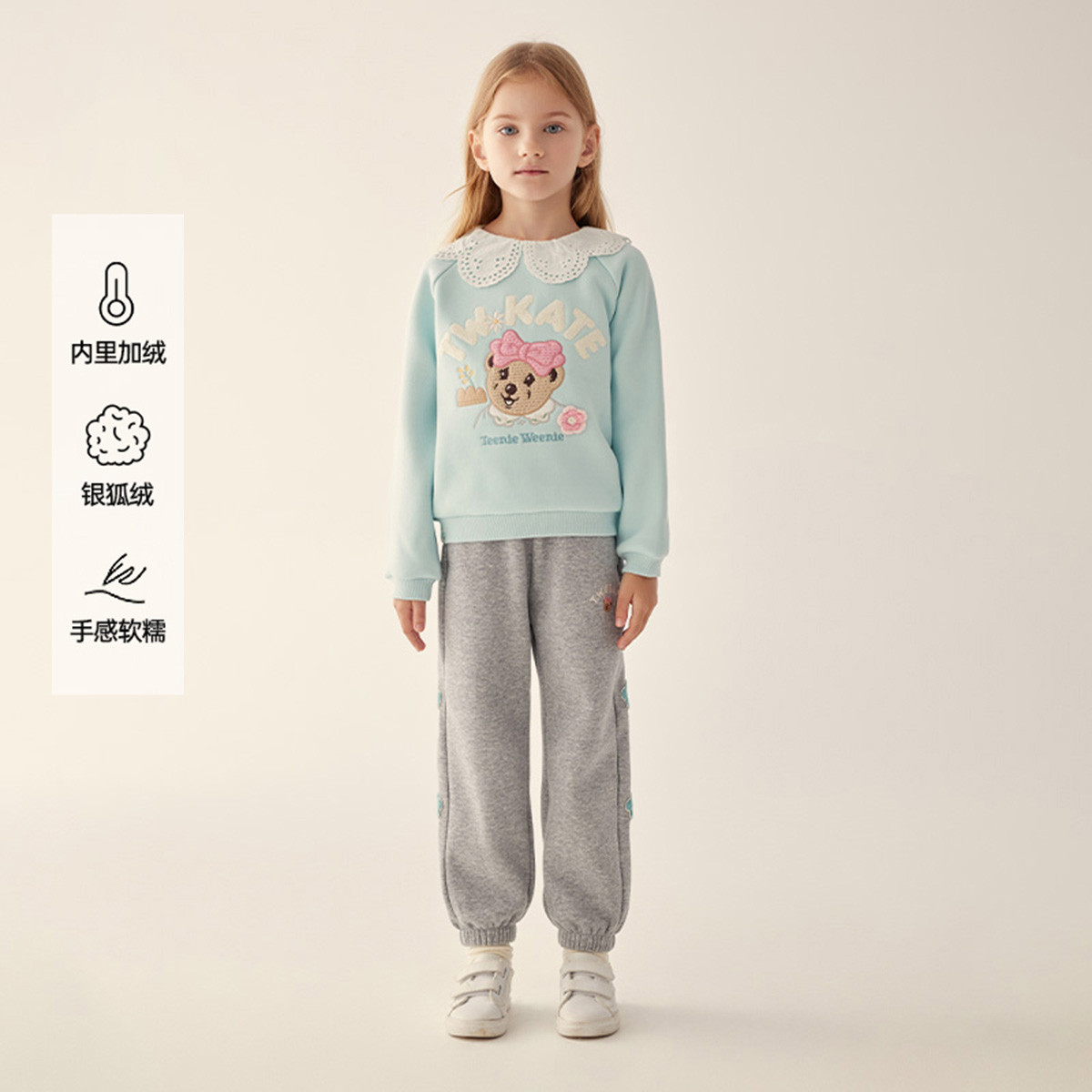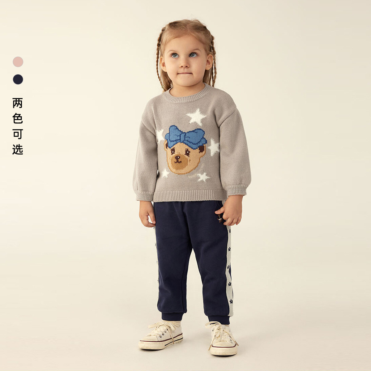 小熊童装春季款女童银狐绒束口卫裤针织裤 000577