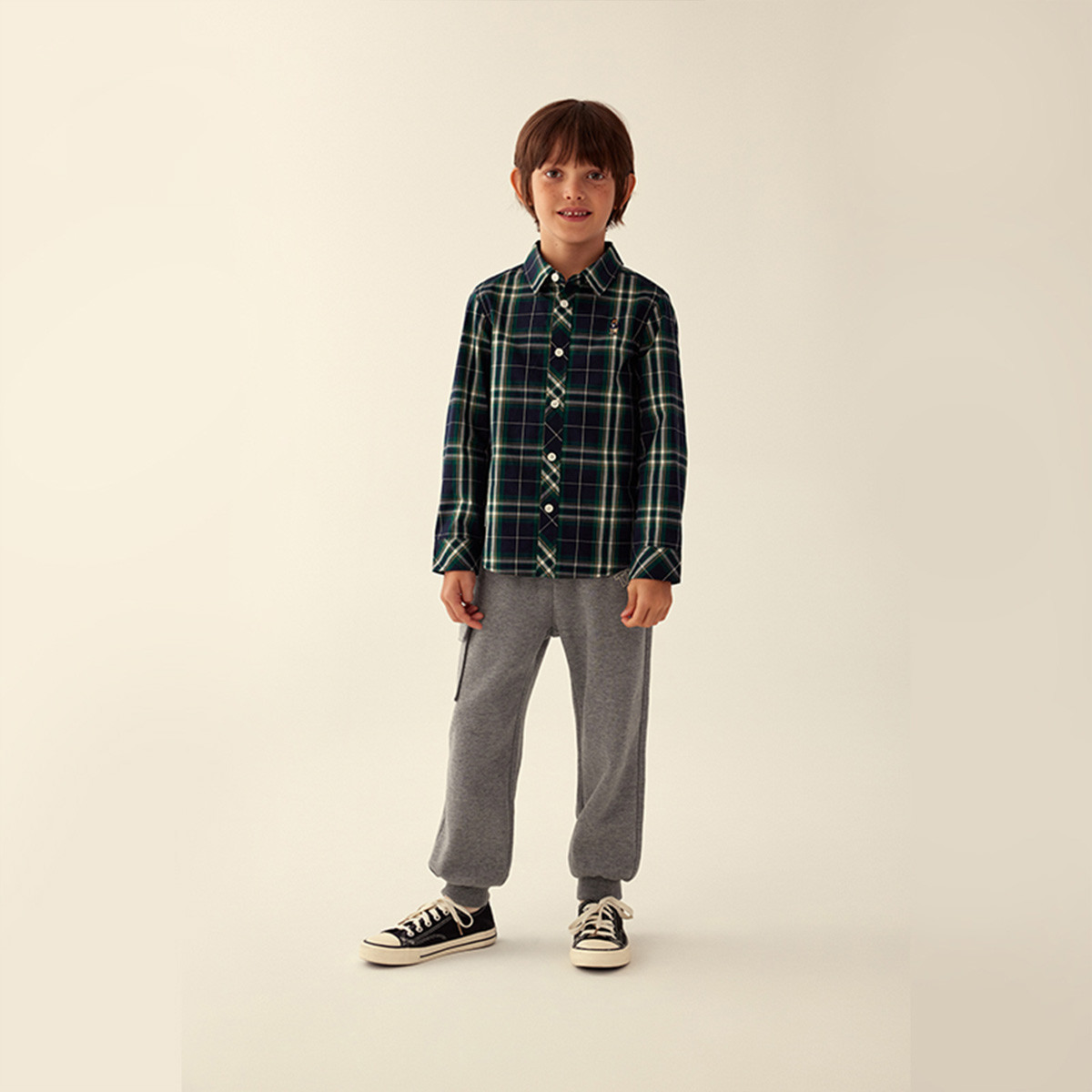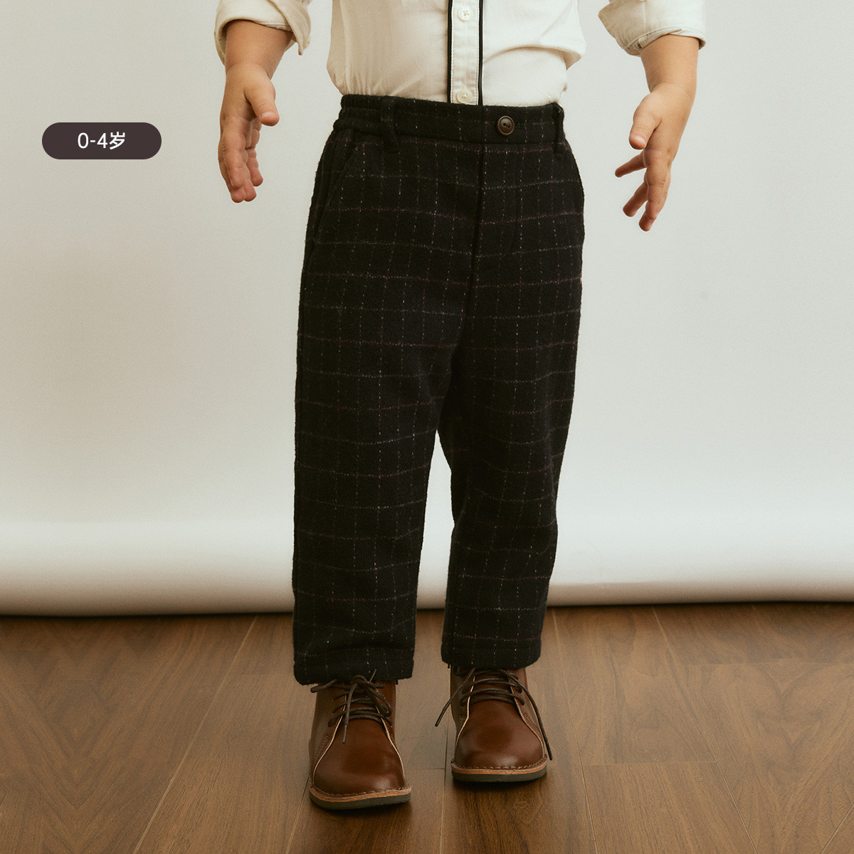 小熊童装春季男宝宝毛呢格纹西裤 156417