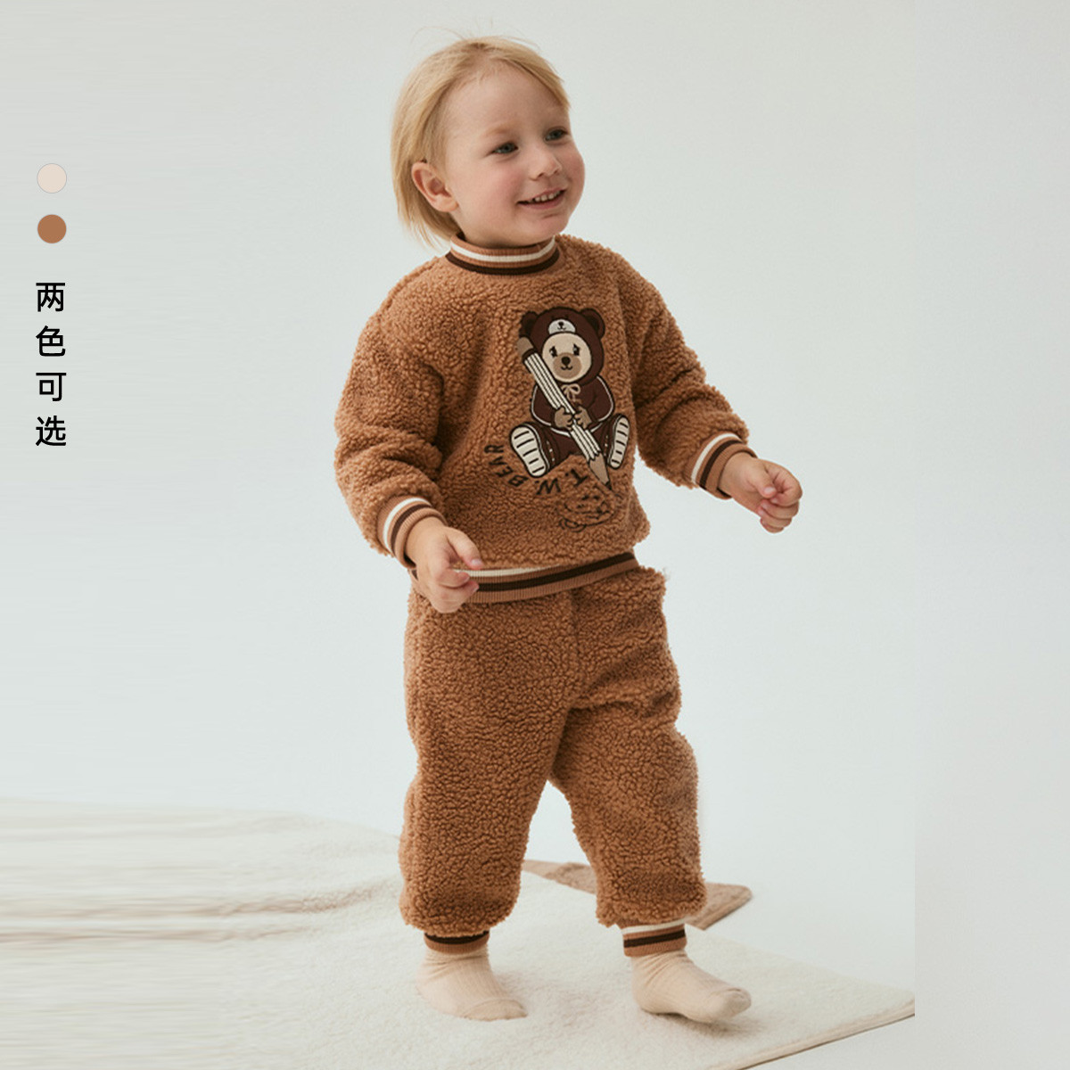 小熊童装春季男女宝宝仿羊羔绒运动裤 171393