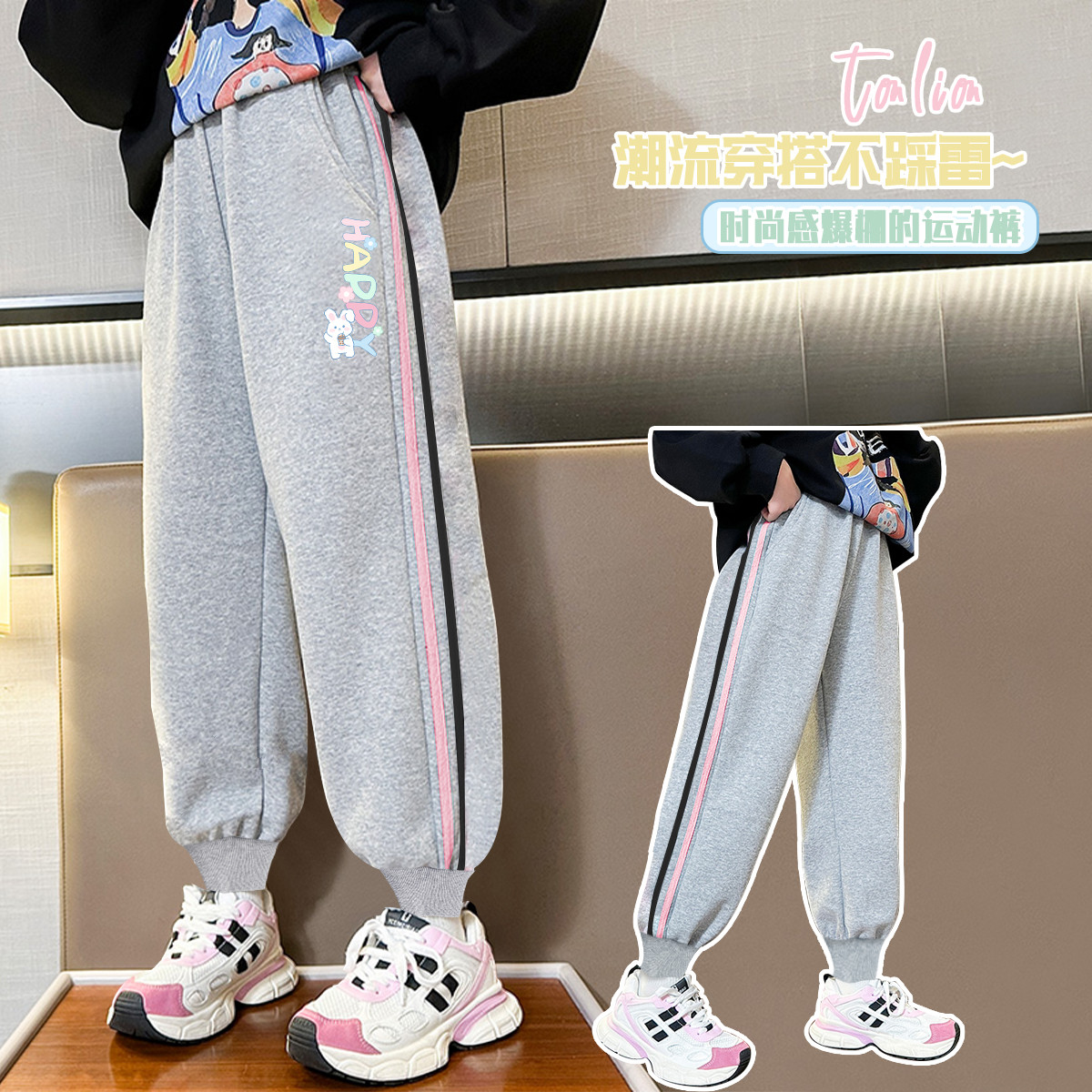 【性价比款】儿童裤子春秋新款舒适运动裤卫裤女孩子束脚洋气长裤 605711