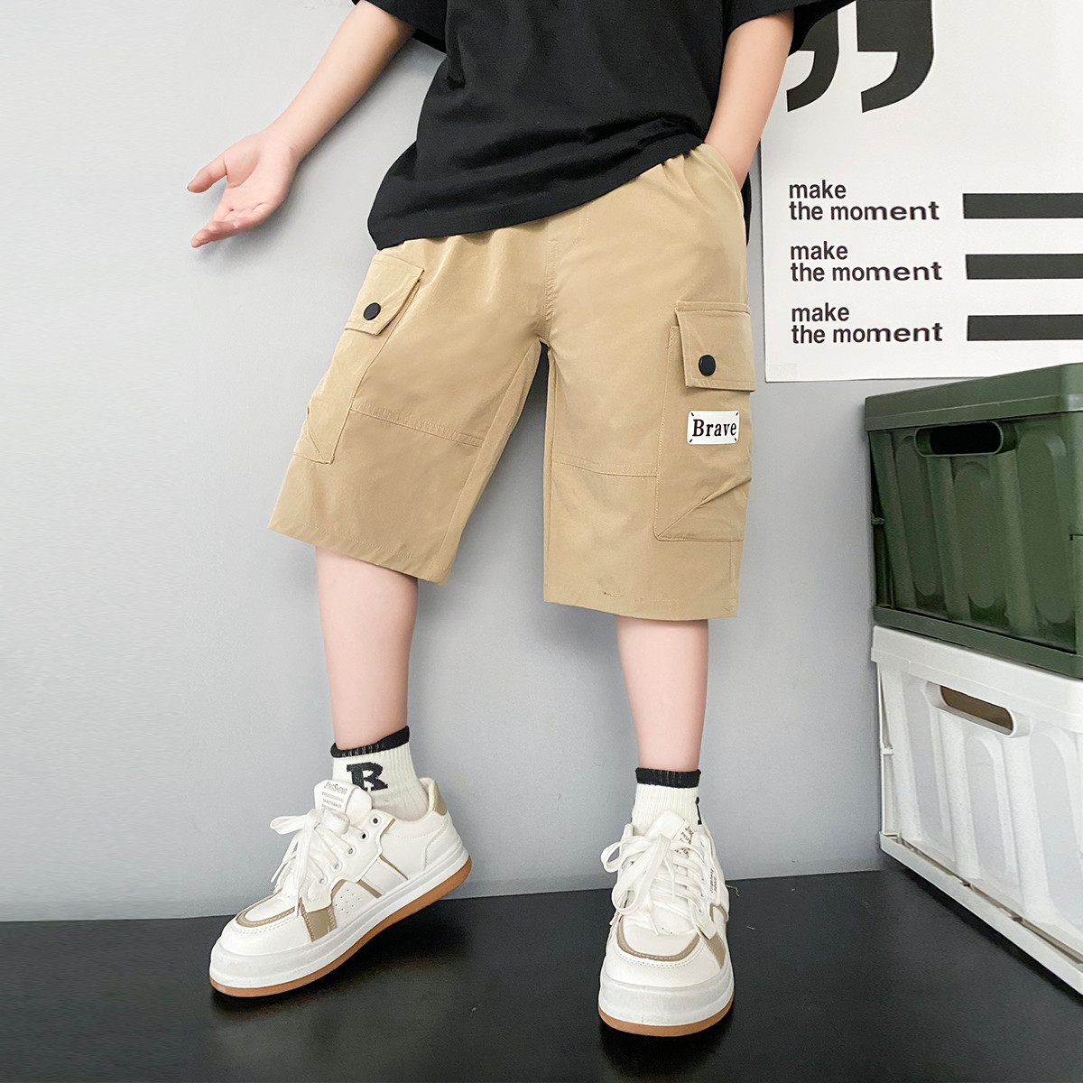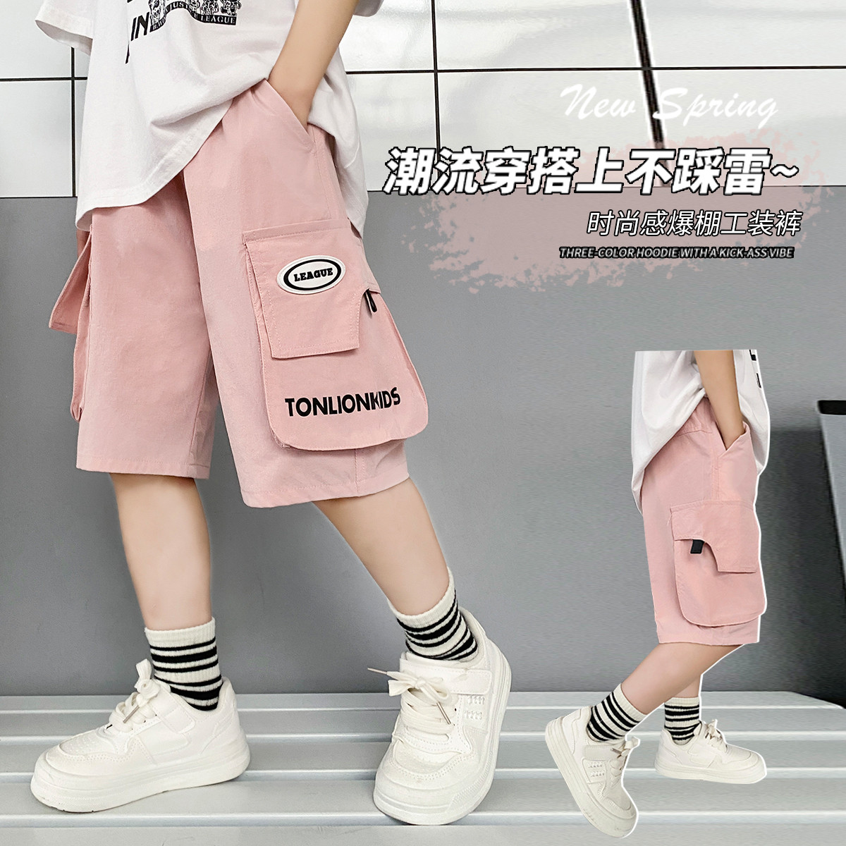 男童裤子秋季薄款儿童工装裤子中大童男孩五分裤休闲短裤宽松 193295