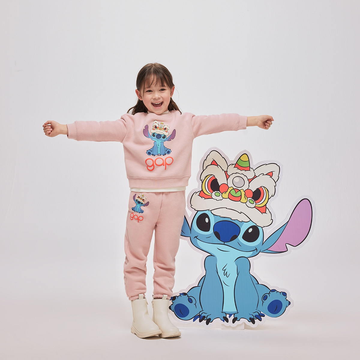 【史迪奇联名】Gap女幼童2024春季抓绒运动束脚卫裤888234 038170