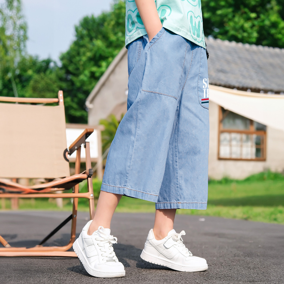 【凉感·天丝】童装天丝牛仔裤子夏季新款中大童男童休闲七分裤潮 048543