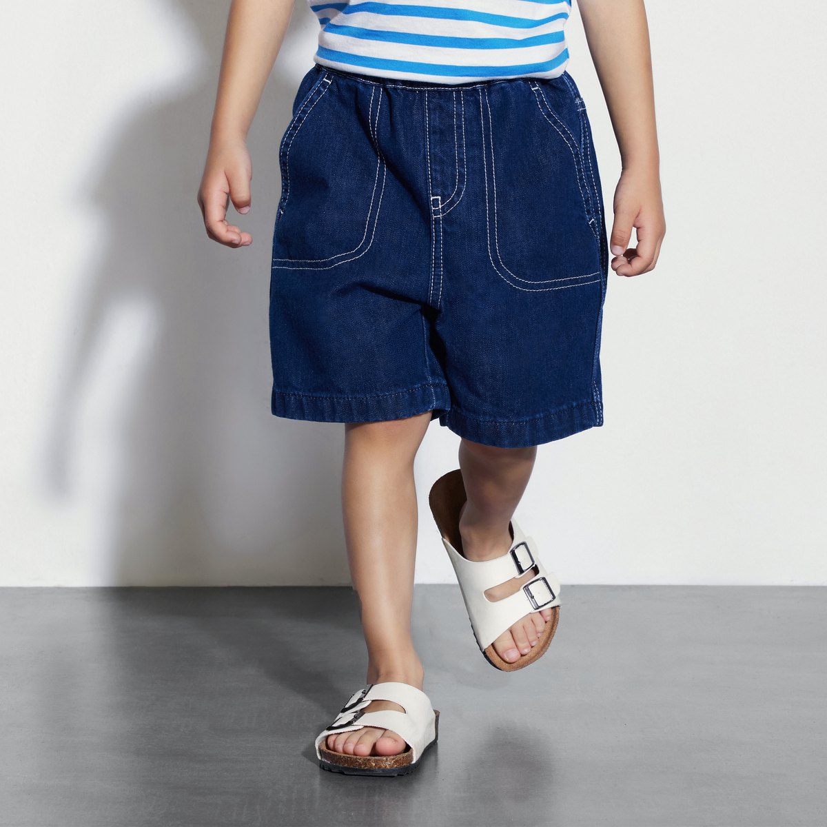 Gap男童2024春秋季纯棉撞色绗线logo口袋牛仔短裤休闲裤466748 164634