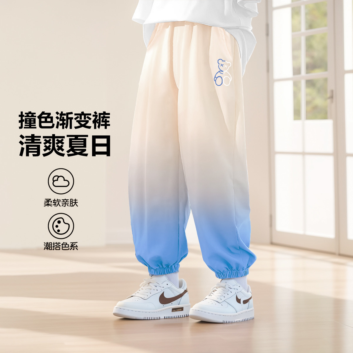 儿童休闲裤夏季潮流男童渐变长裤舒适透气百搭时尚中大童 624207