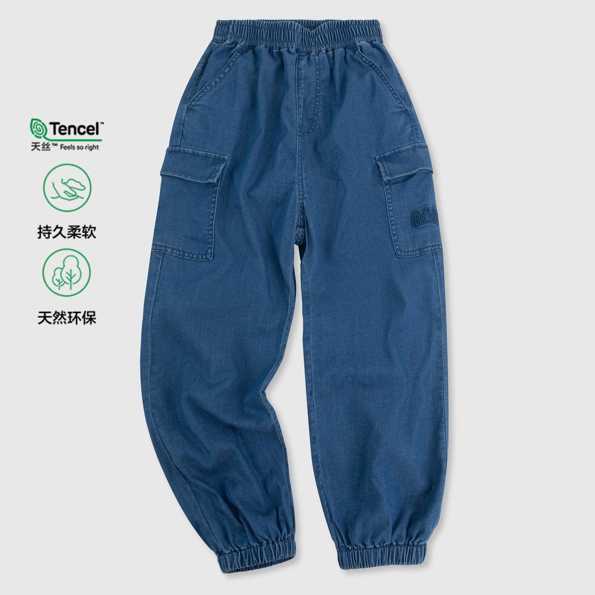 Gap男童2024春季款莱赛尔天丝口袋牛仔工装儿童装束口裤890428 450586