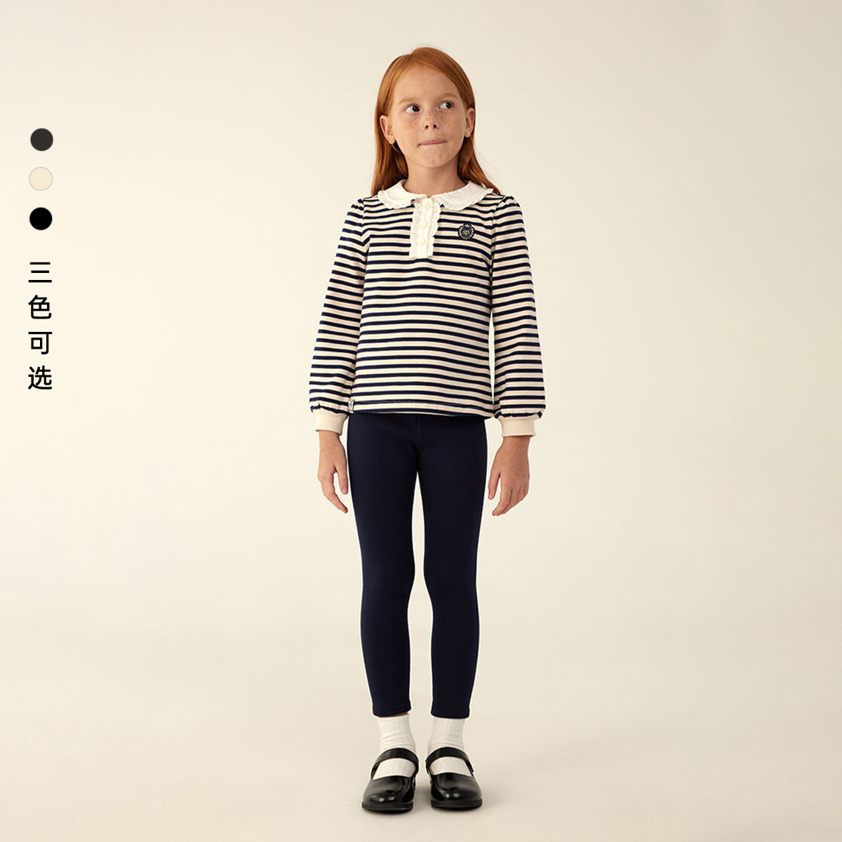 小熊童装春季女童简约纯色银狐绒打底裤 120449