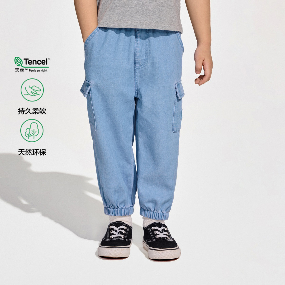 Gap男幼童2024春季款莱赛尔天丝牛仔工装束口裤儿童装890419 416218