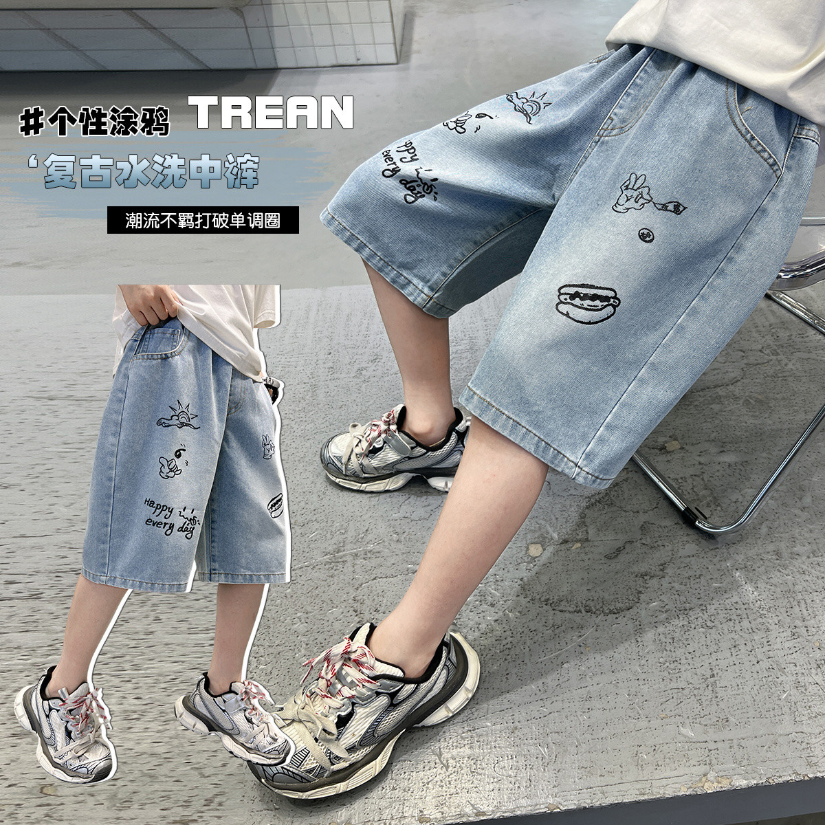 男童中裤秋季薄款小男孩儿童裤子儿童百搭牛仔五分秋装 111759