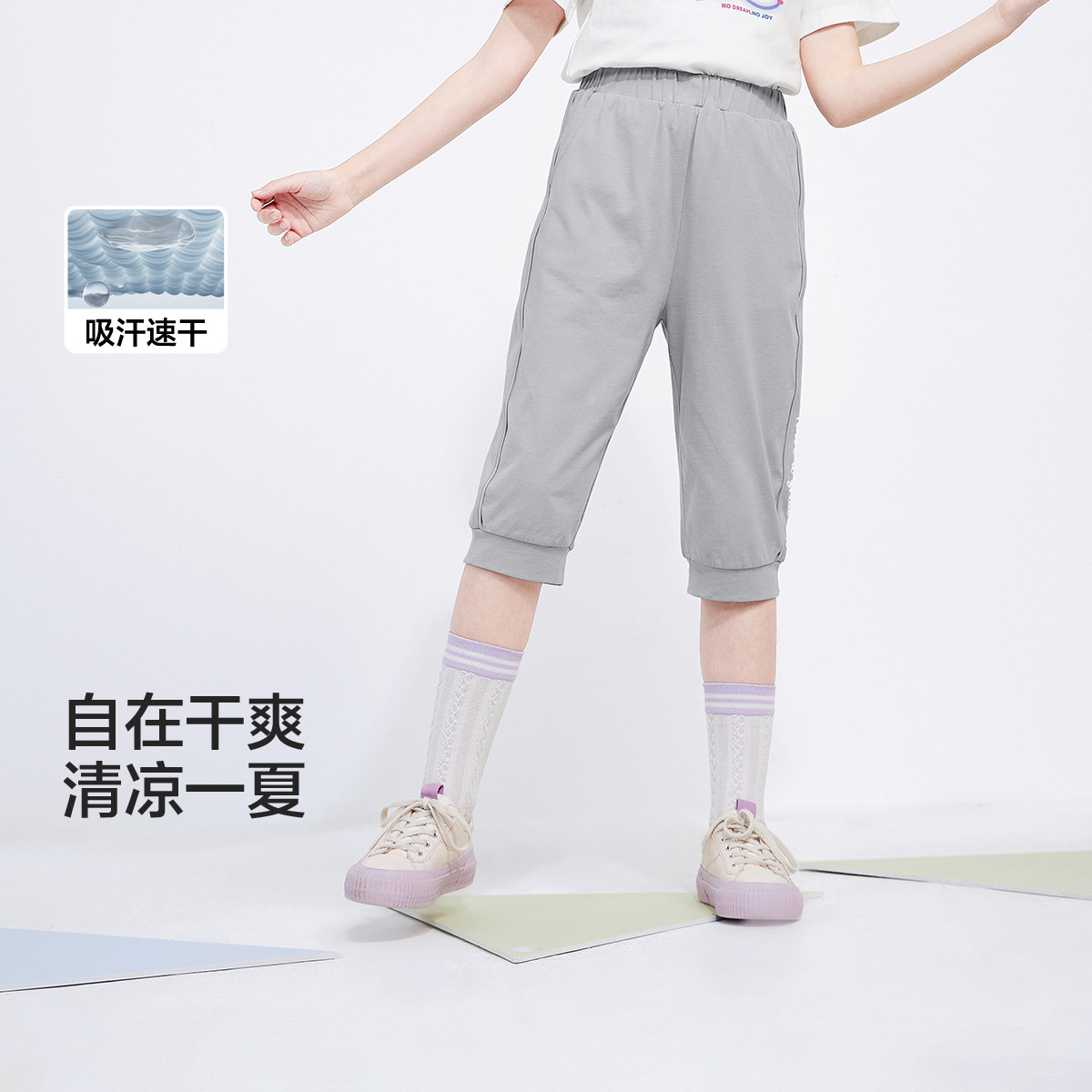 小凉皮302C儿童裤子凉感吸湿速干长裤男童宝宝女童防晒九分裤 026053