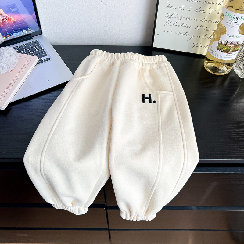 哈萌熊童装儿童冬季山系加绒休闲裤男童冬款裤子简约女童加厚长裤百搭卫裤