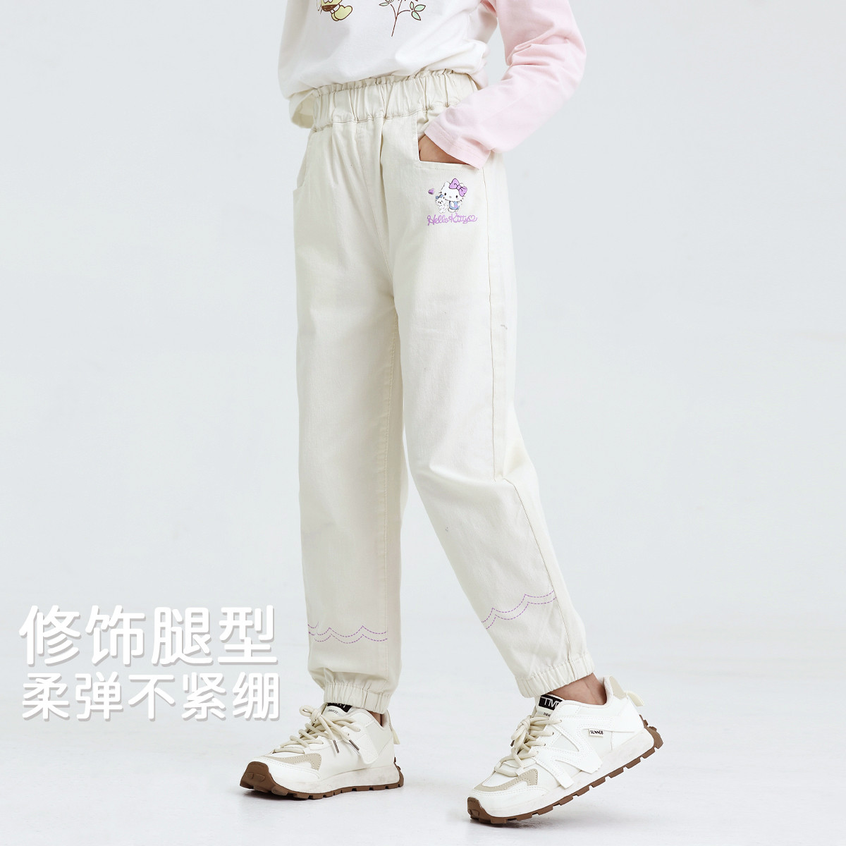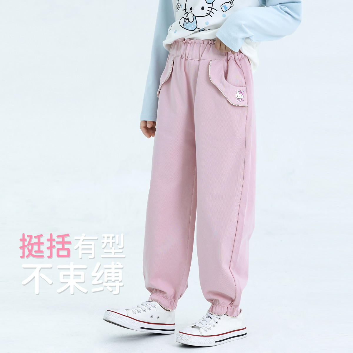 女童长裤春夏新品中大童针织花边束脚裤宽松百搭立体口袋休闲裤子 926657
