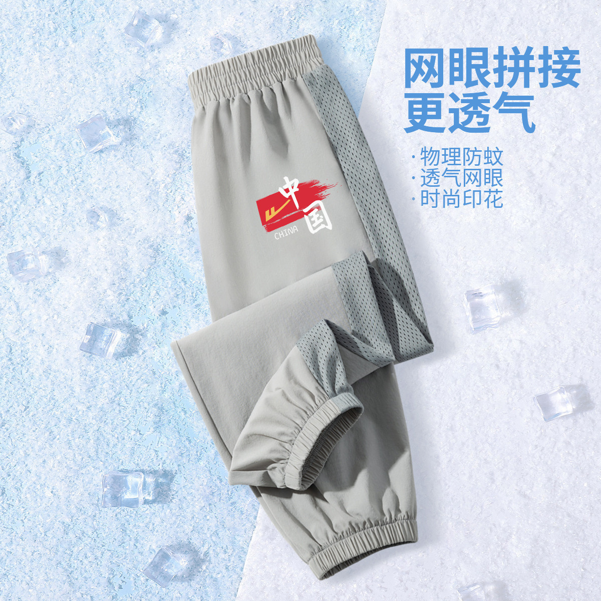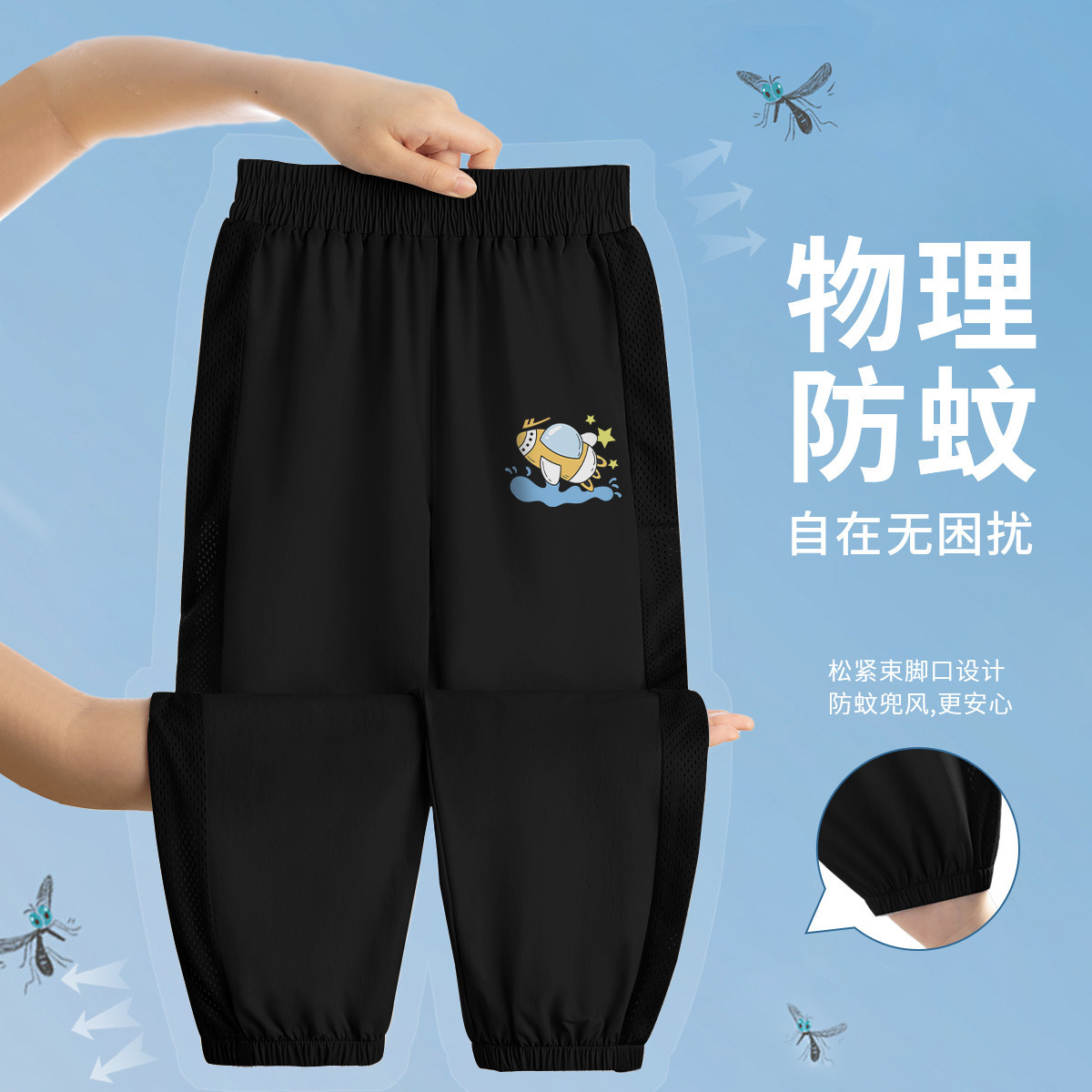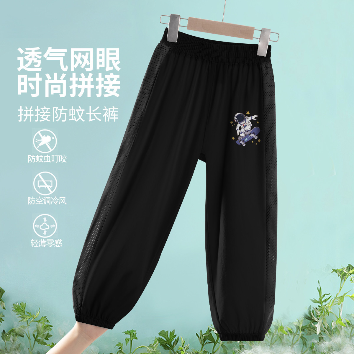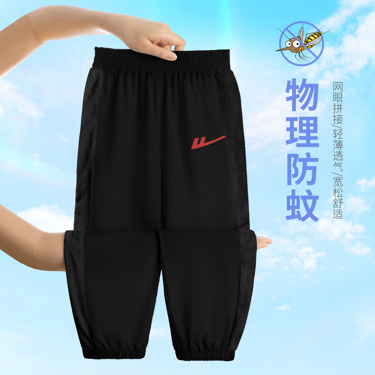 儿童裤子夏季薄款透气女童拼接防蚊裤中国潮男孩夏装休闲运动长裤 133075