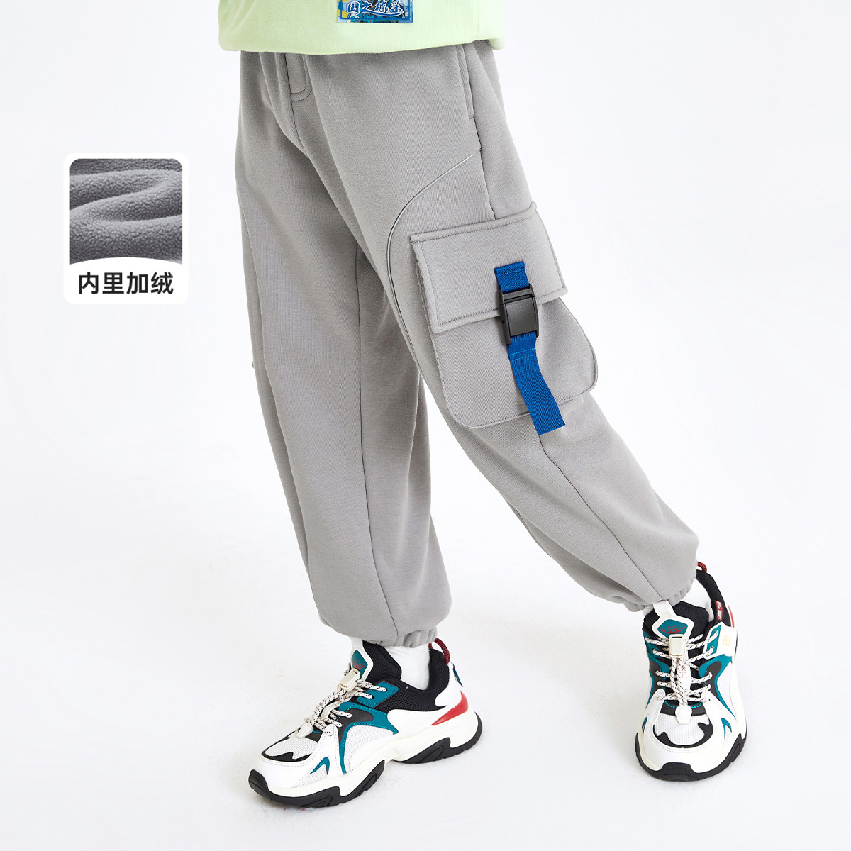 内里加绒国潮元素设计春秋款儿童裤子男童加绒长裤运动休闲工装裤 899589