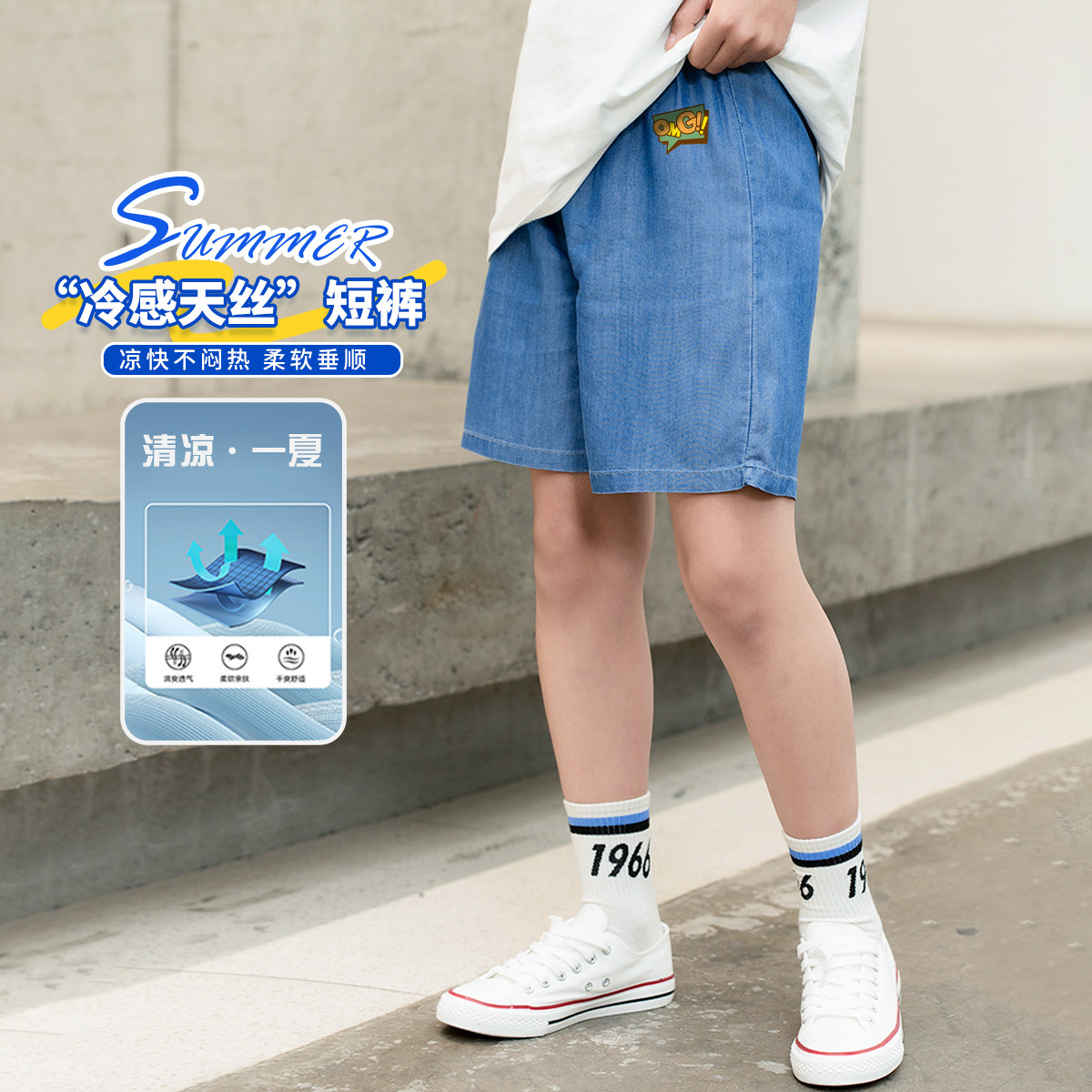 【天丝·冷感】儿童裤子24新款大童薄款外穿天丝牛仔热裤潮 184719