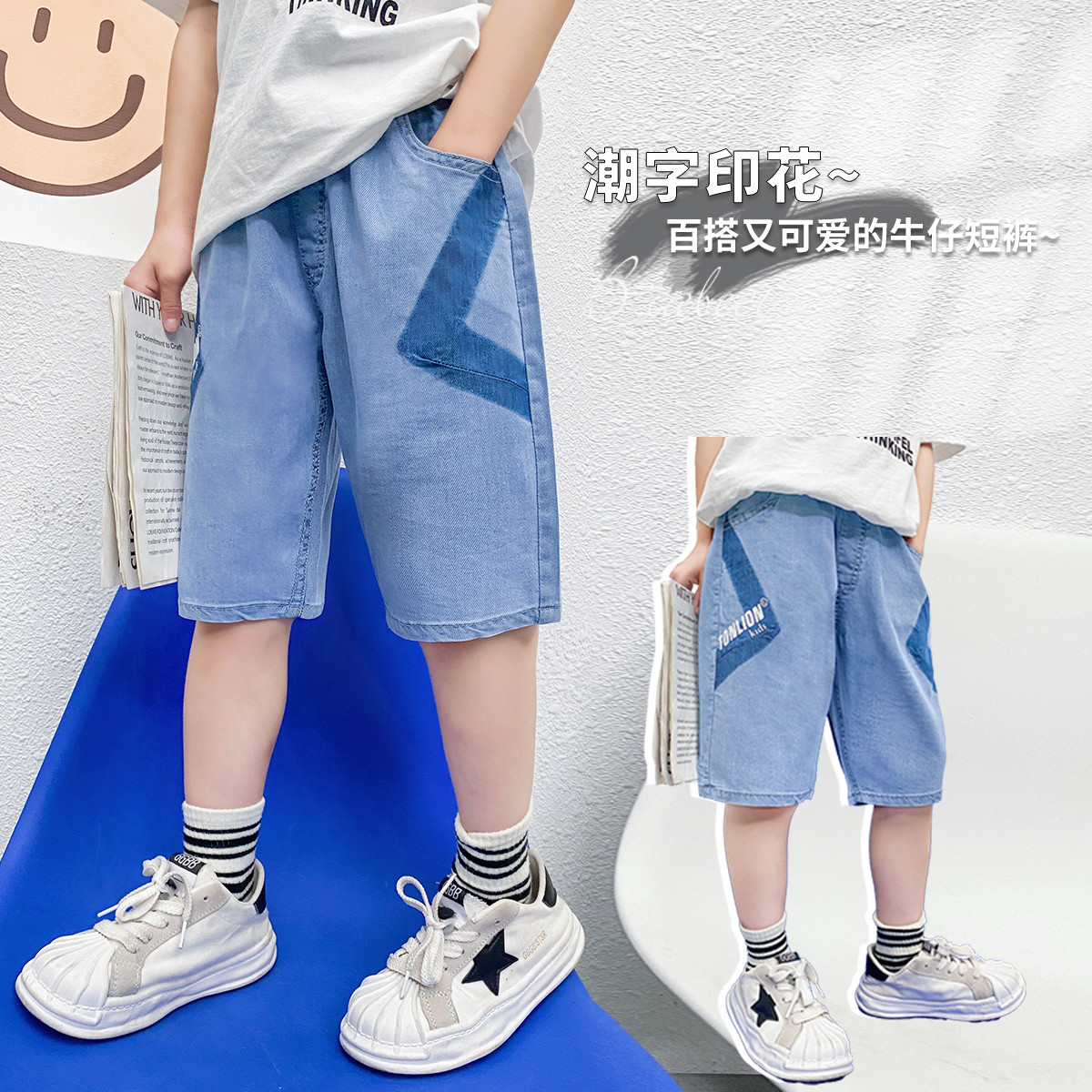 男童裤子秋季薄款牛仔裤男孩中裤儿童洋气五分裤 342543