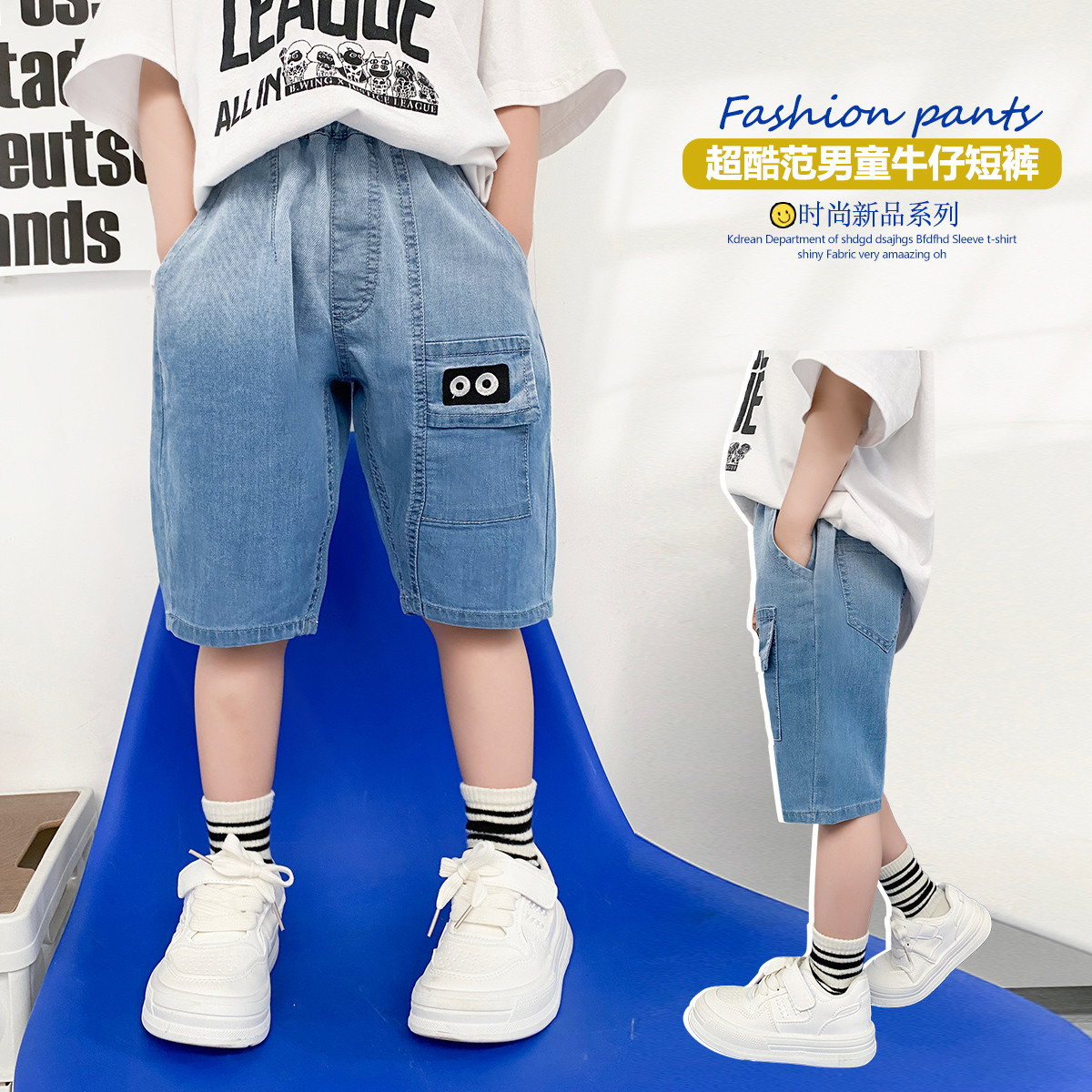 【凉感·天丝】童装天丝牛仔裤子夏季新款中大童男童休闲七分裤潮 048543
