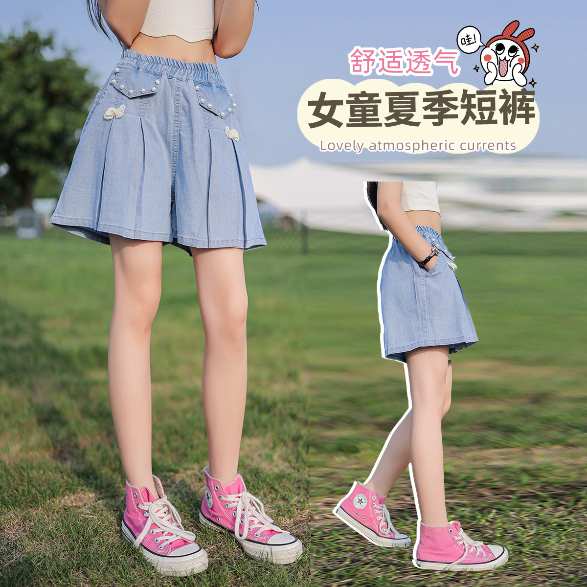 女童牛仔短裤秋季23款中大童松紧腰裙裤女孩儿童裤子洋气 320463