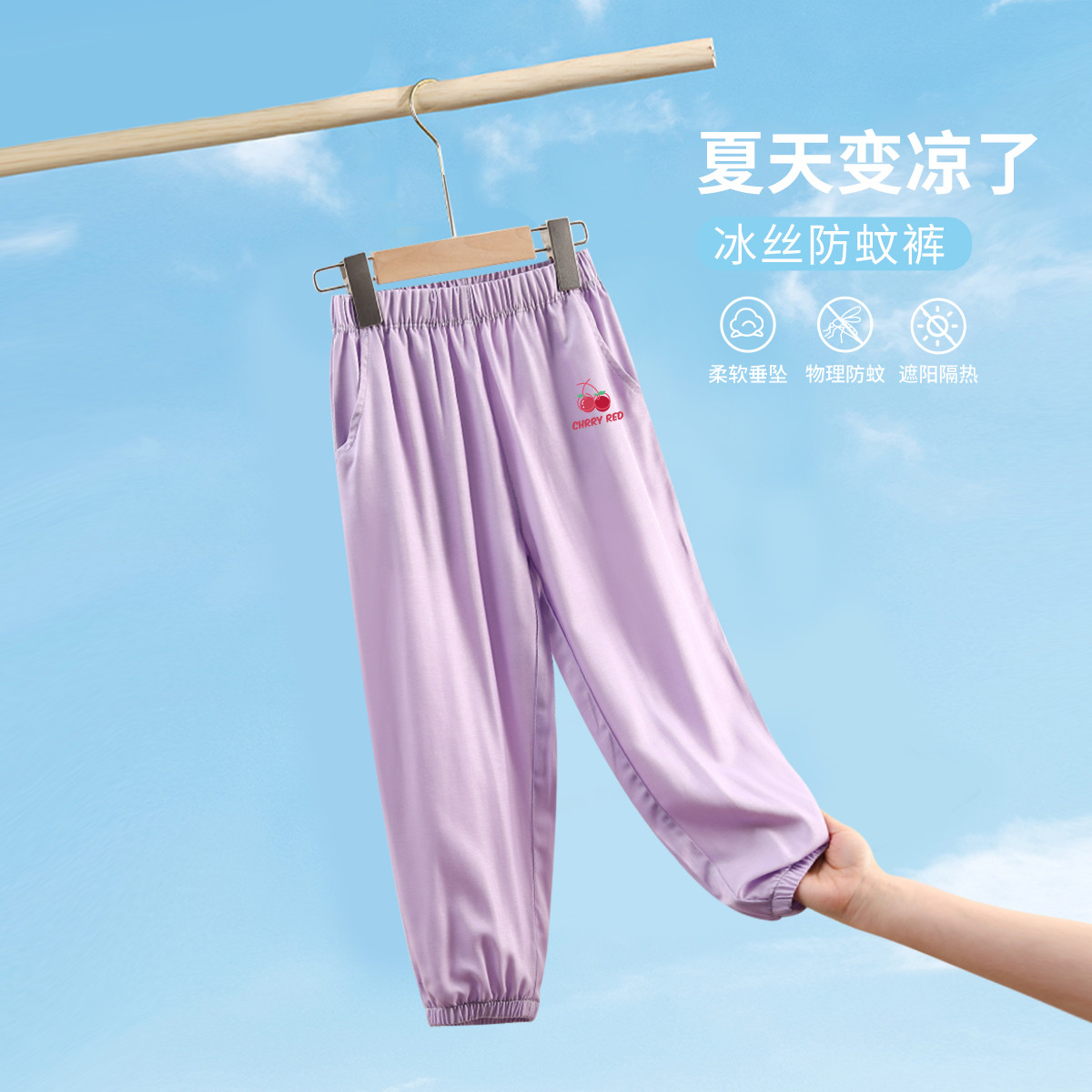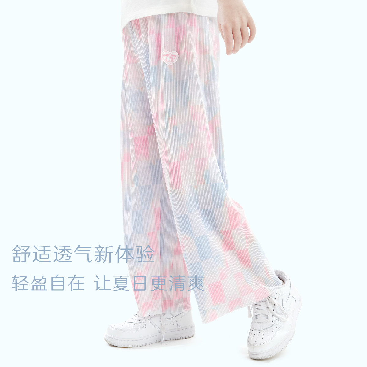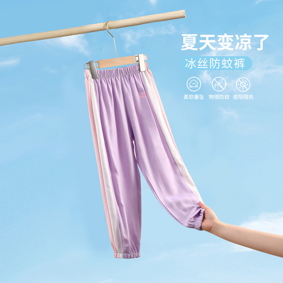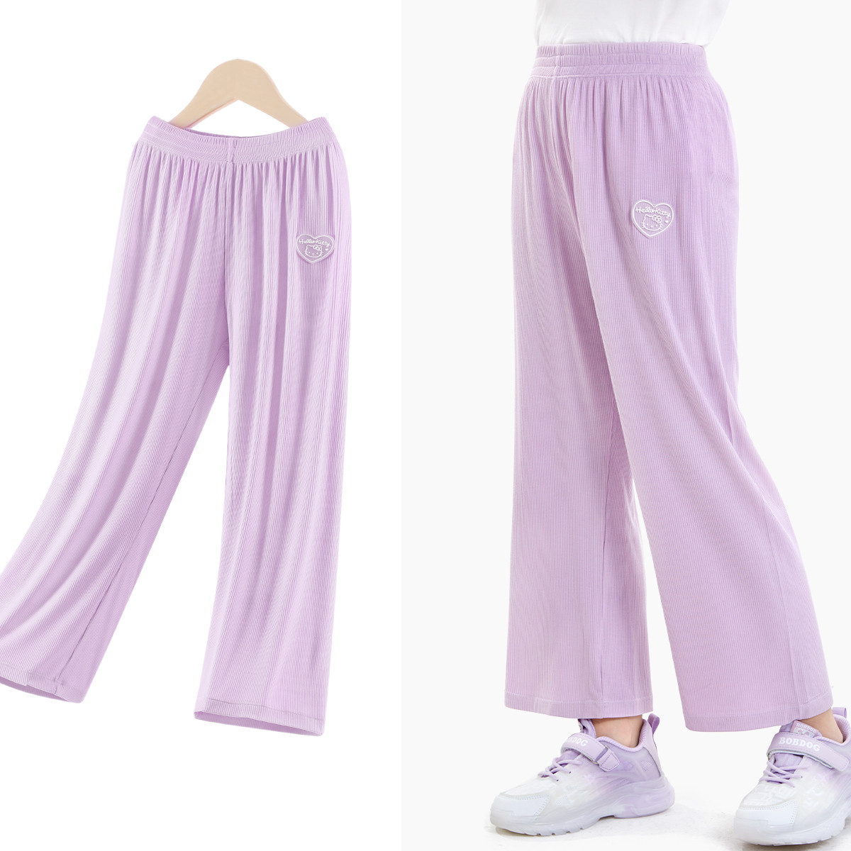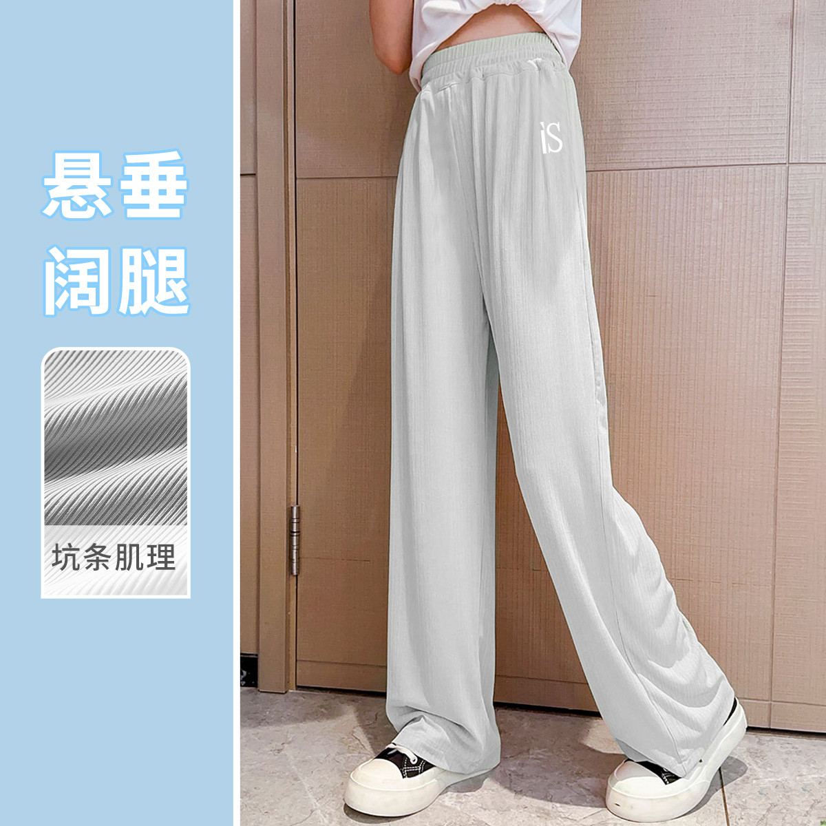 女童裤子夏季防蚊儿童直筒阔腿裤薄款冰丝洋气大童宽松休闲裤居家 473025