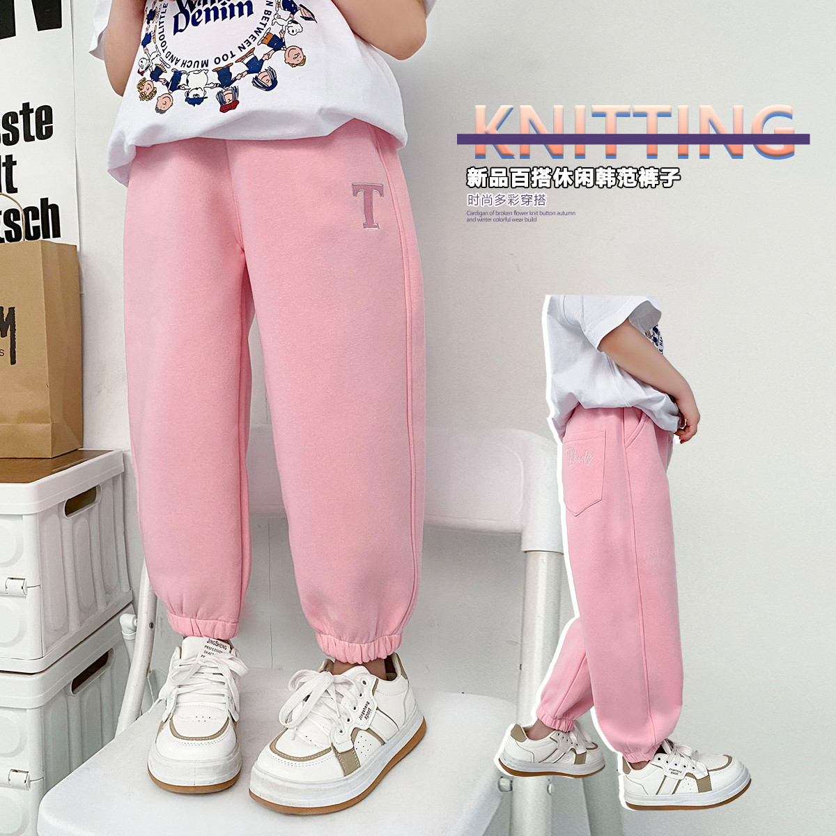 【春季新品】2025中大童女童亲肤舒适透气拼接运动裤百搭长裤 271775