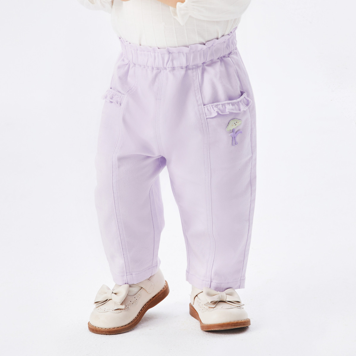 拼接卷边儿童裤子婴幼长裤女童加绒打底裤宝宝秋冬装 092101