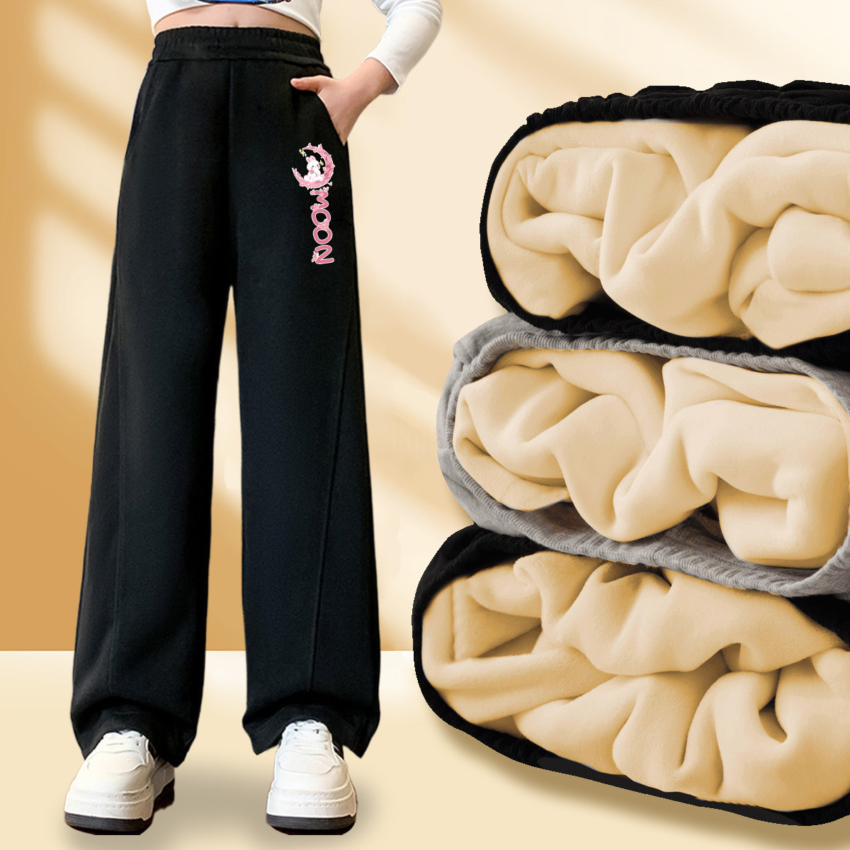 秋冬加绒加厚女童百搭运动卫裤中大童保暖阔腿裤 007375