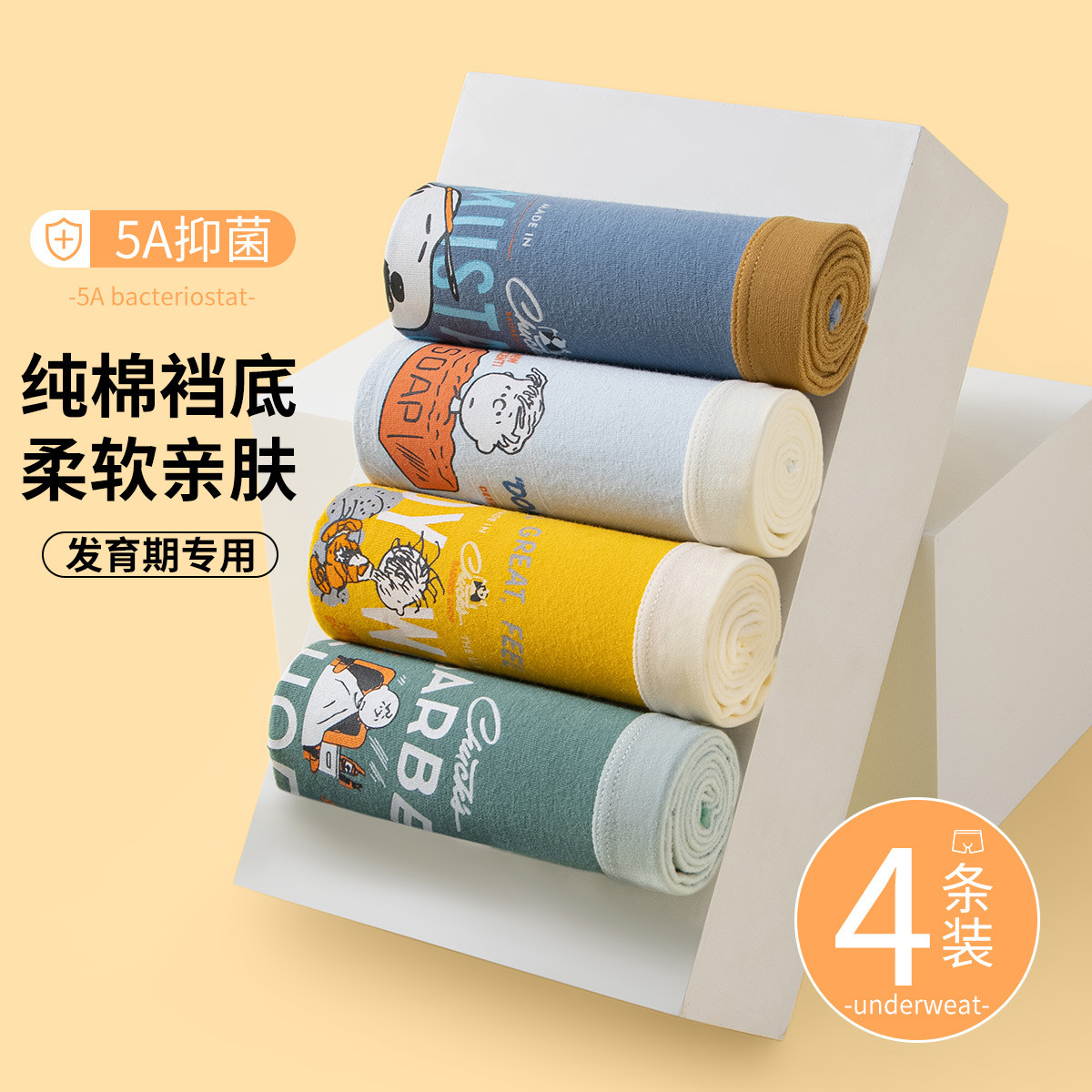 【5A级抑菌】4条儿童内裤男童内裤平角100纯棉里裆中大男童 499787