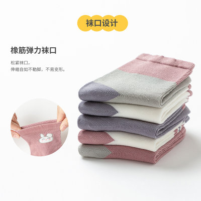 英氏(Yeehoo)儿童四季款卡通透气棉质袜子(5双装)XS 粉色兔子款