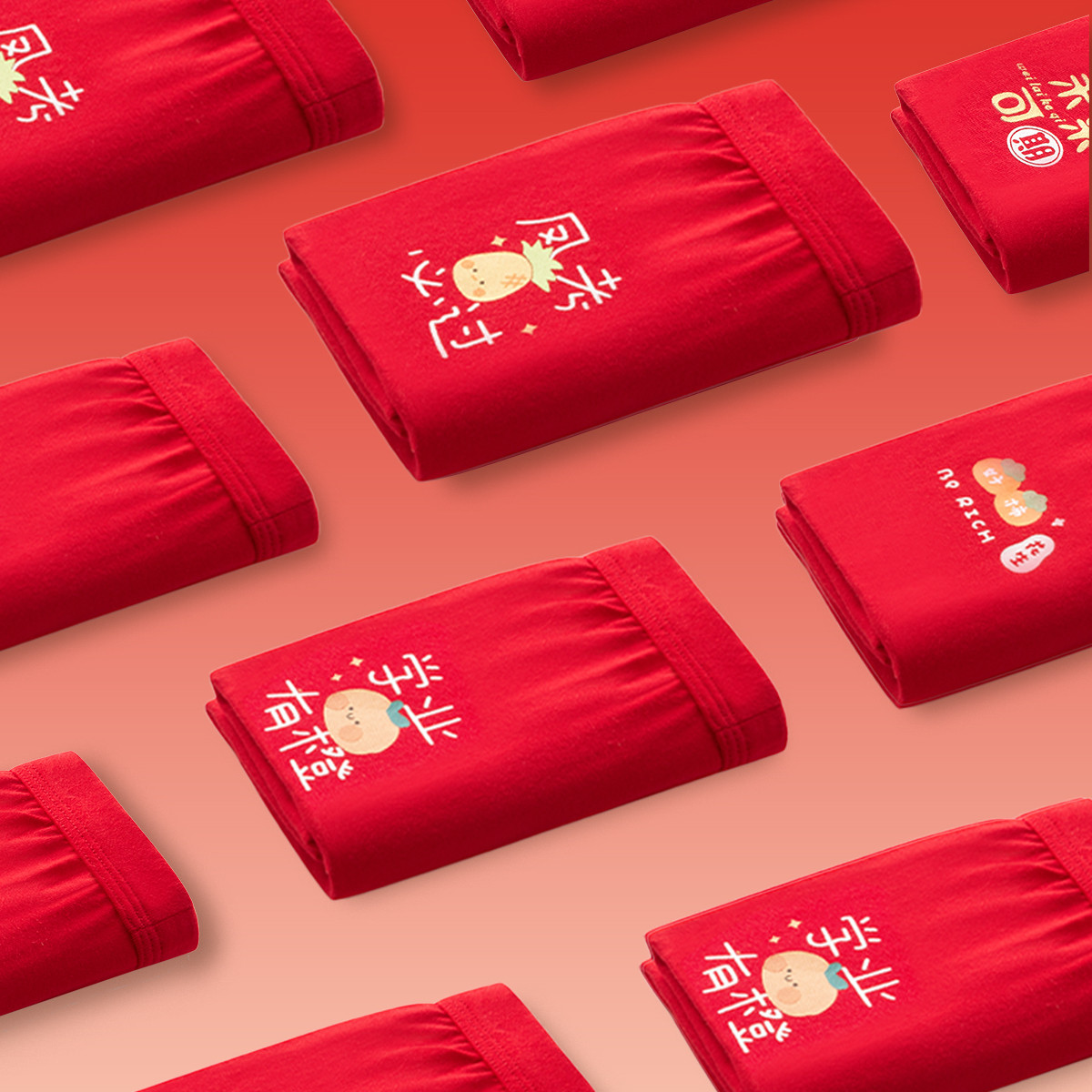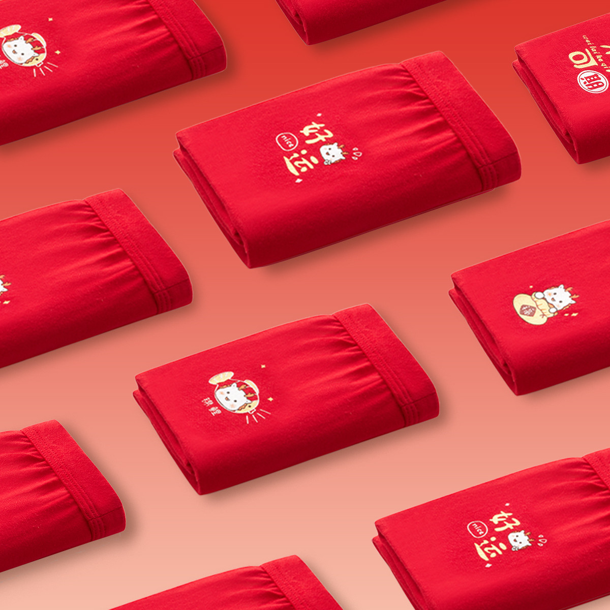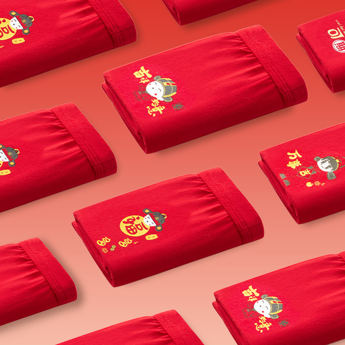 【3A级抑菌】鸿运四条装女童内裤棉质平角中大童红色儿童内裤女 422859