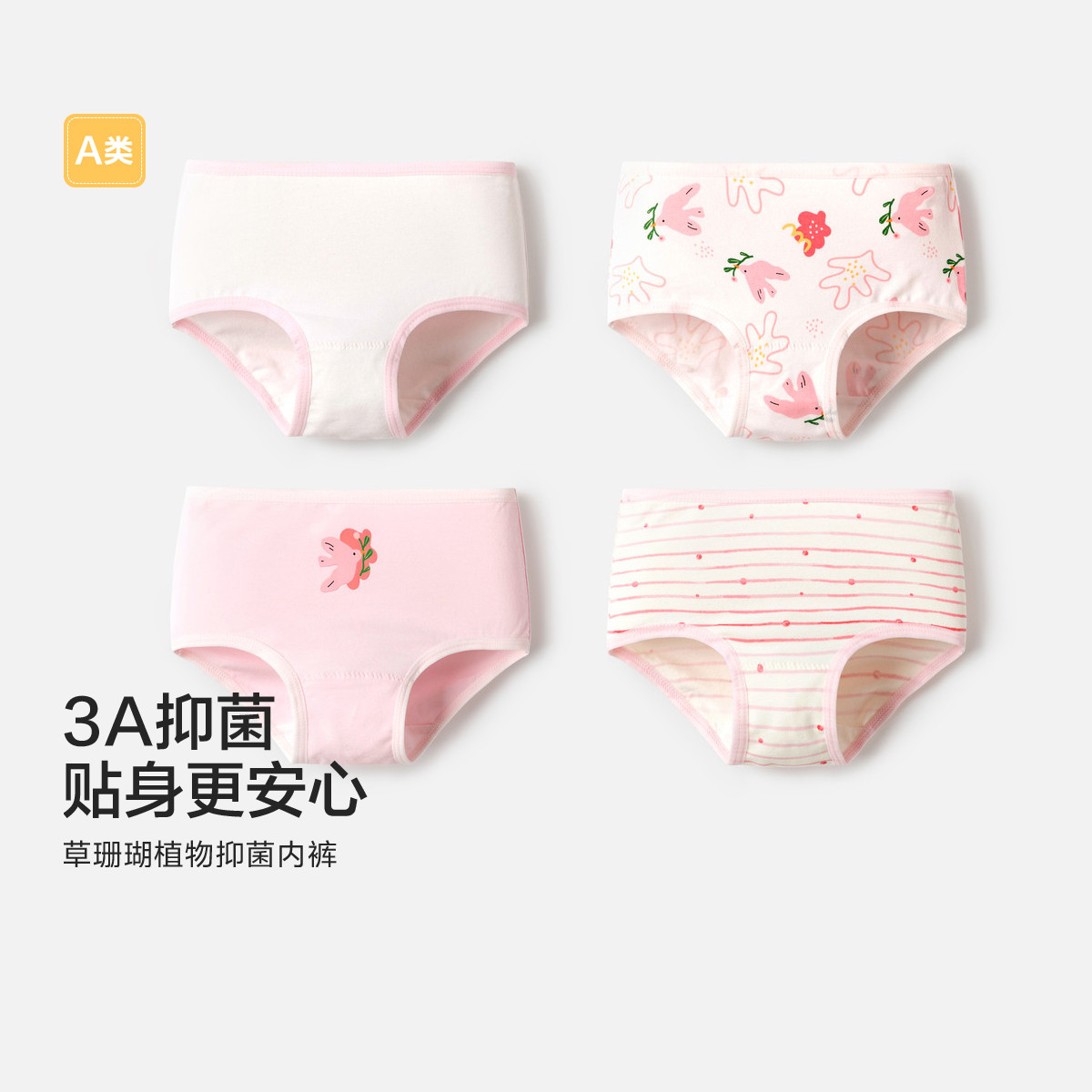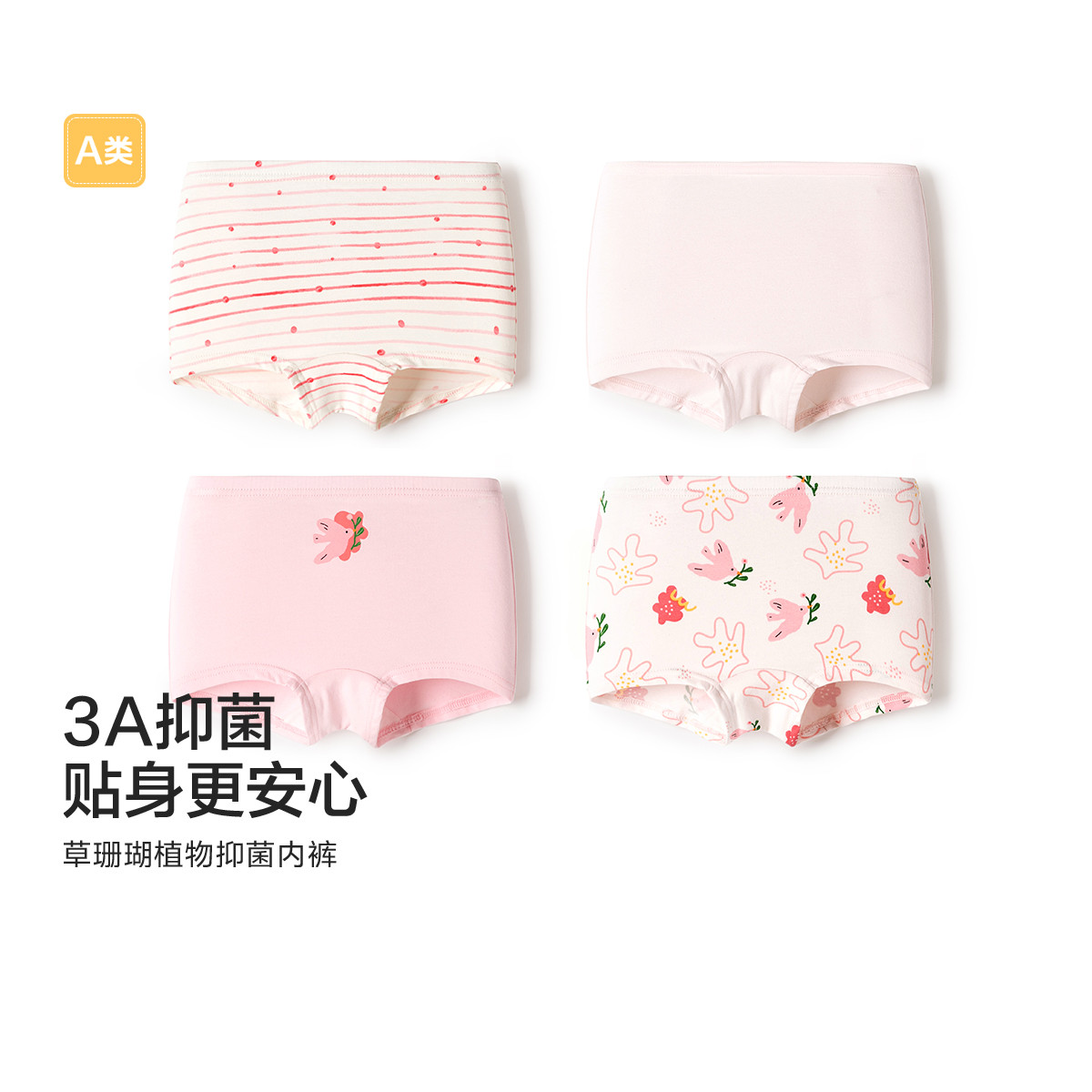 抑菌裆底女童内裤儿童平角裤四角裤A类三角裤不夹PP透气四条装 383877